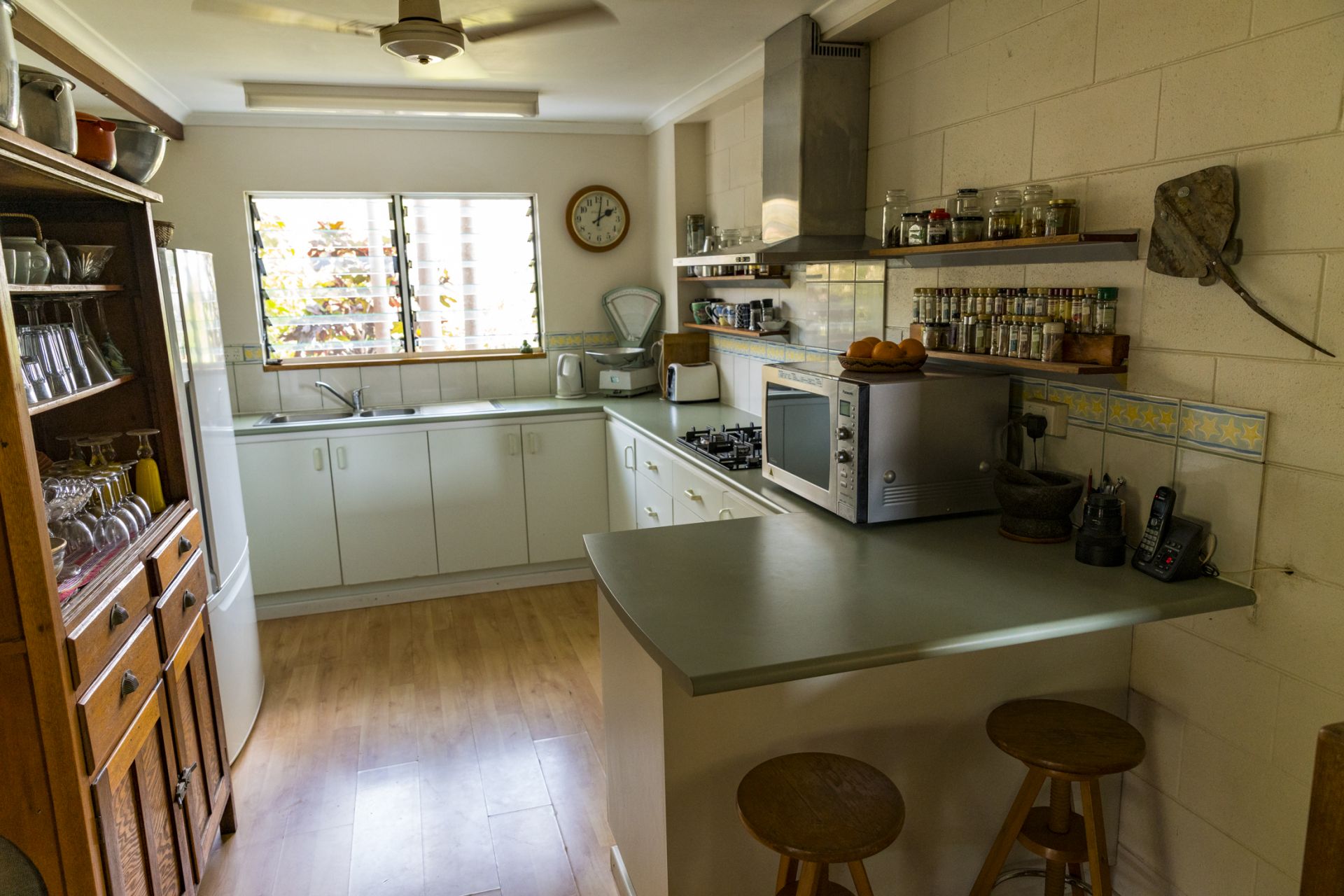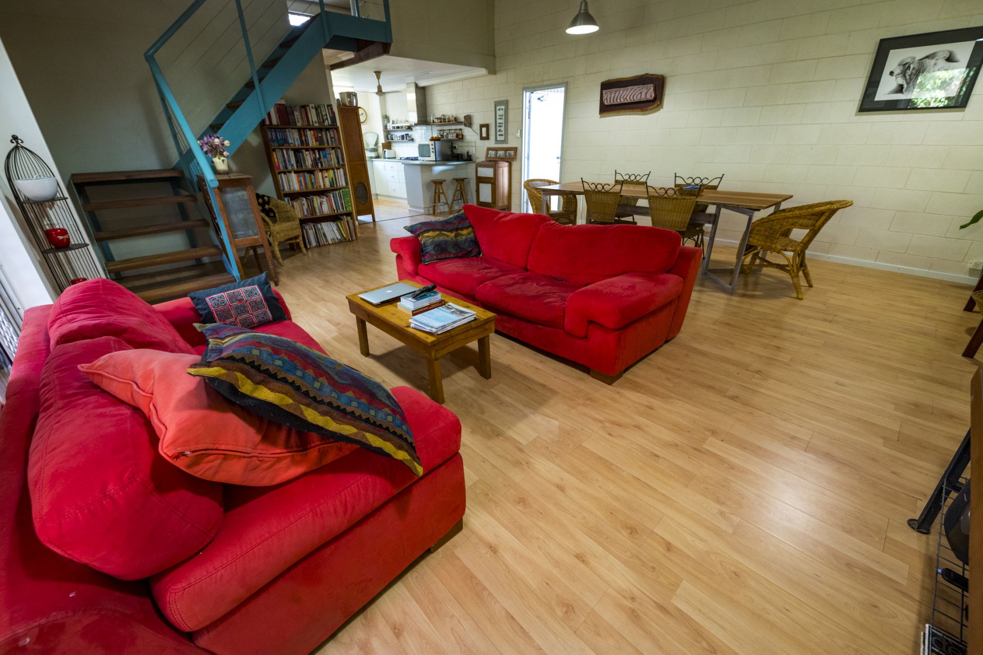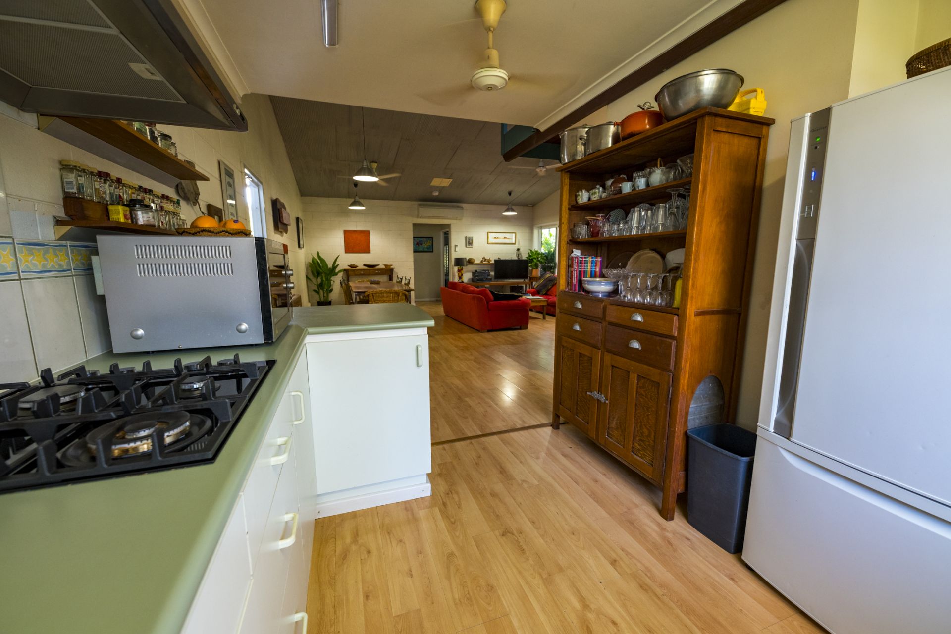 The 108m2 accommodation under the main roof but separated from the workshop by a block fire wall, offers a spacious open plan lounge, dining & kitchen, along with two bedrooms, two toilets, bathroom/laundry. Fully airconditioned and equipped with ceiling fans, the residence is designed for comfort. The landscaped yard includes a veggie patch, a 4500lt water tank, a high-quality bore, a shade house and a shade sail. With bitumen driveways, ample parking for vehicles, and both front and side access, this fully fenced property is ideal for any business.
