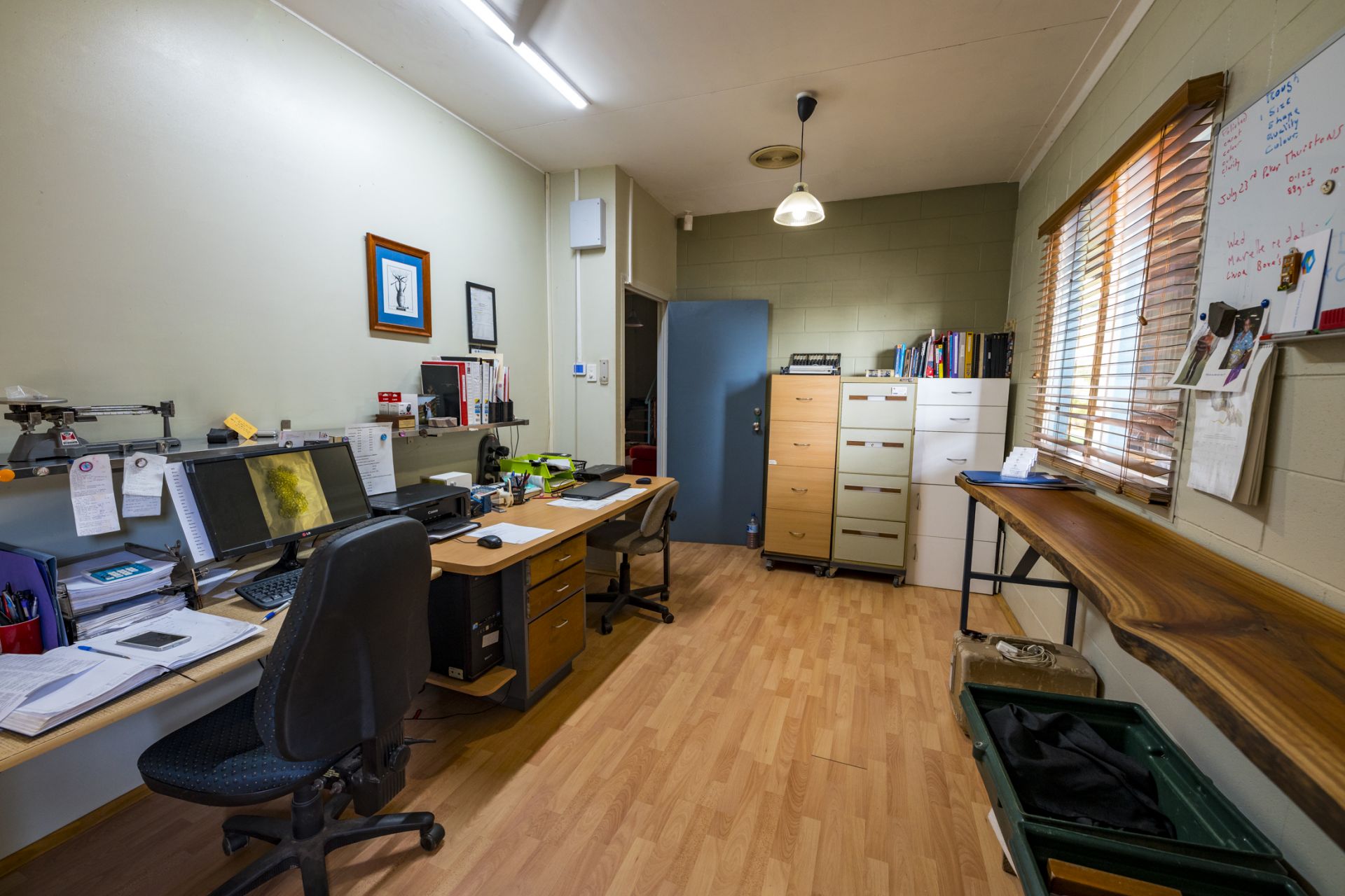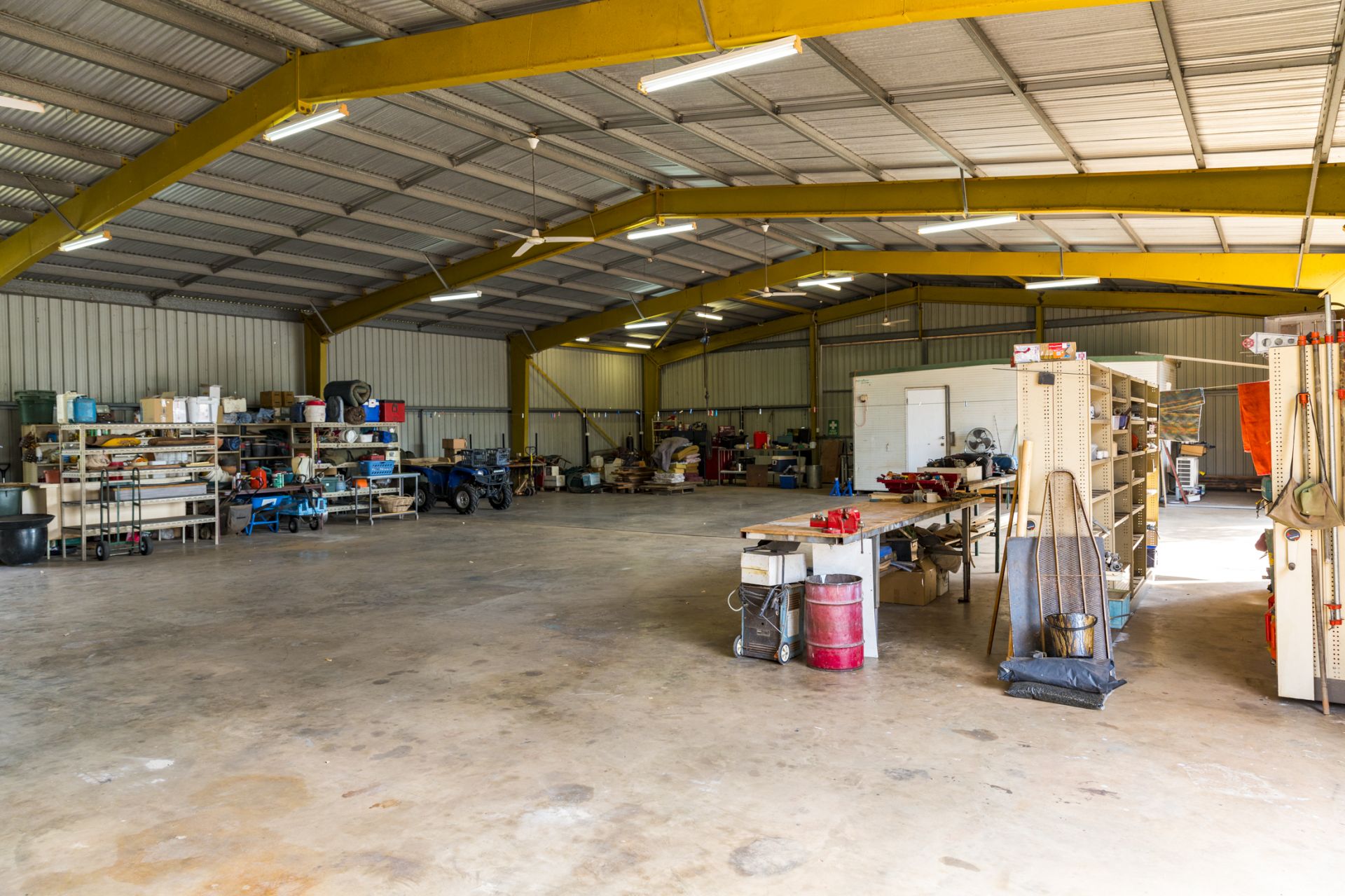 The 432 m2 heavy-duty workshop is equipped with a concrete slab, three & single-phase power, four x 5.8m double sliding doors, 4m minimum truss height, and a portal steel frame construction with Trimdek cladding. The insulated roof, roof vents and fans ensure a comfortable working environment.