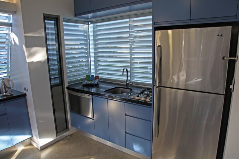 The Crescent Head holiday homes place a tiny resource footprint on our planet, making them world-class examples of green housing. They use recyclable building materials, such as rammed earth walls, and employ passive heating and cooling design to maintain a perfect living temperature.