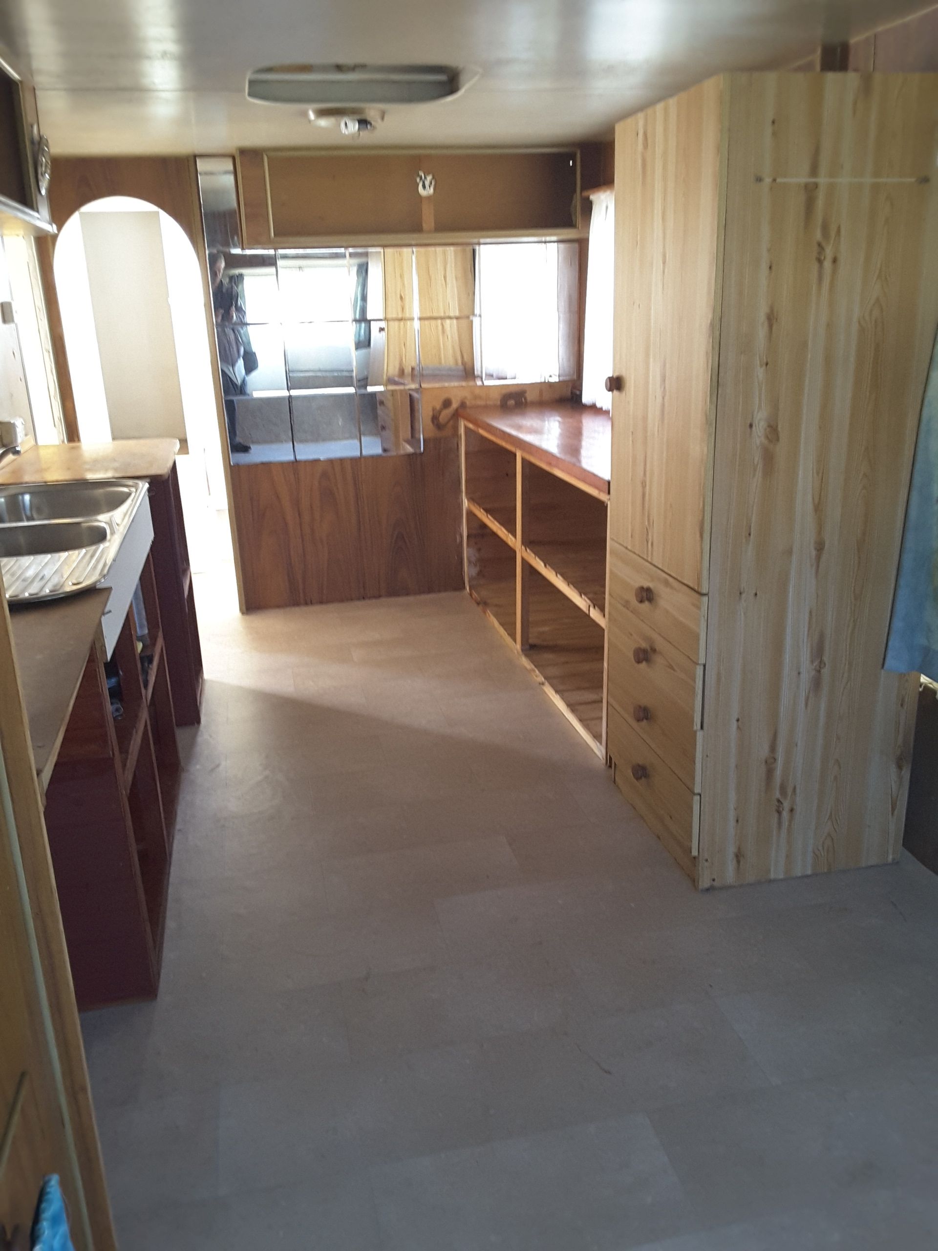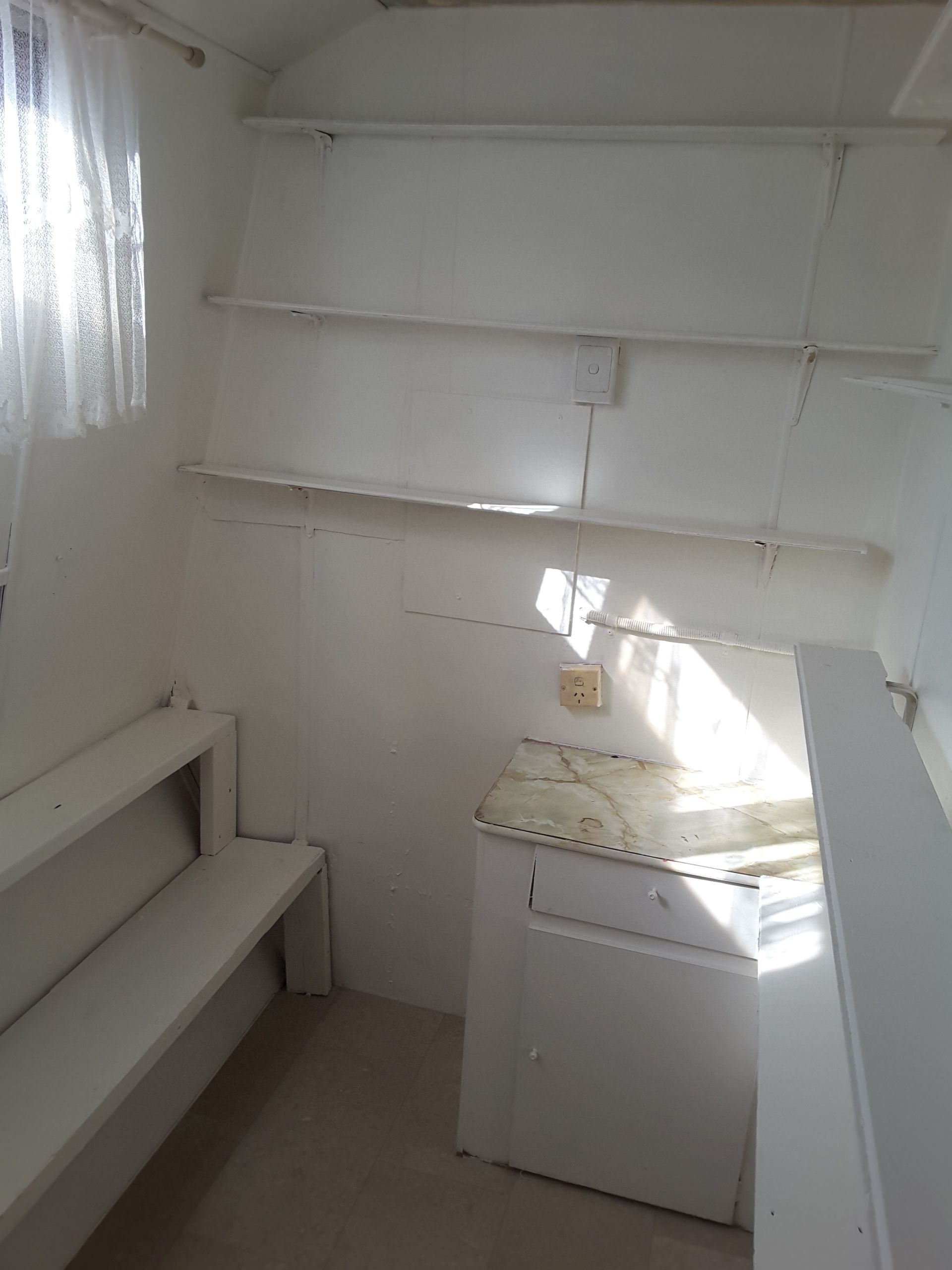 New lino throughout and freshly painted inside. A great bathroom /toilet with washing machine (can be removed if you have one) , Fridge and Freezer also included which can go if you don't need it.