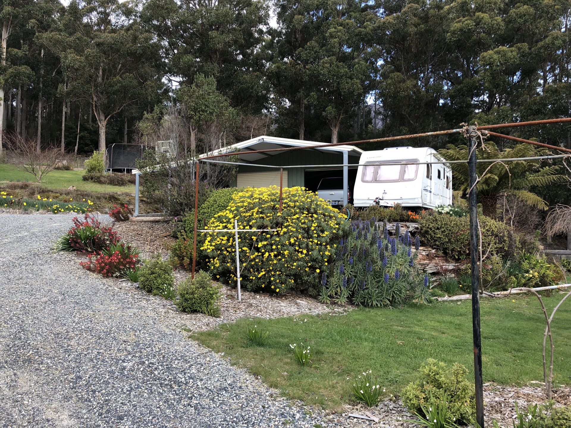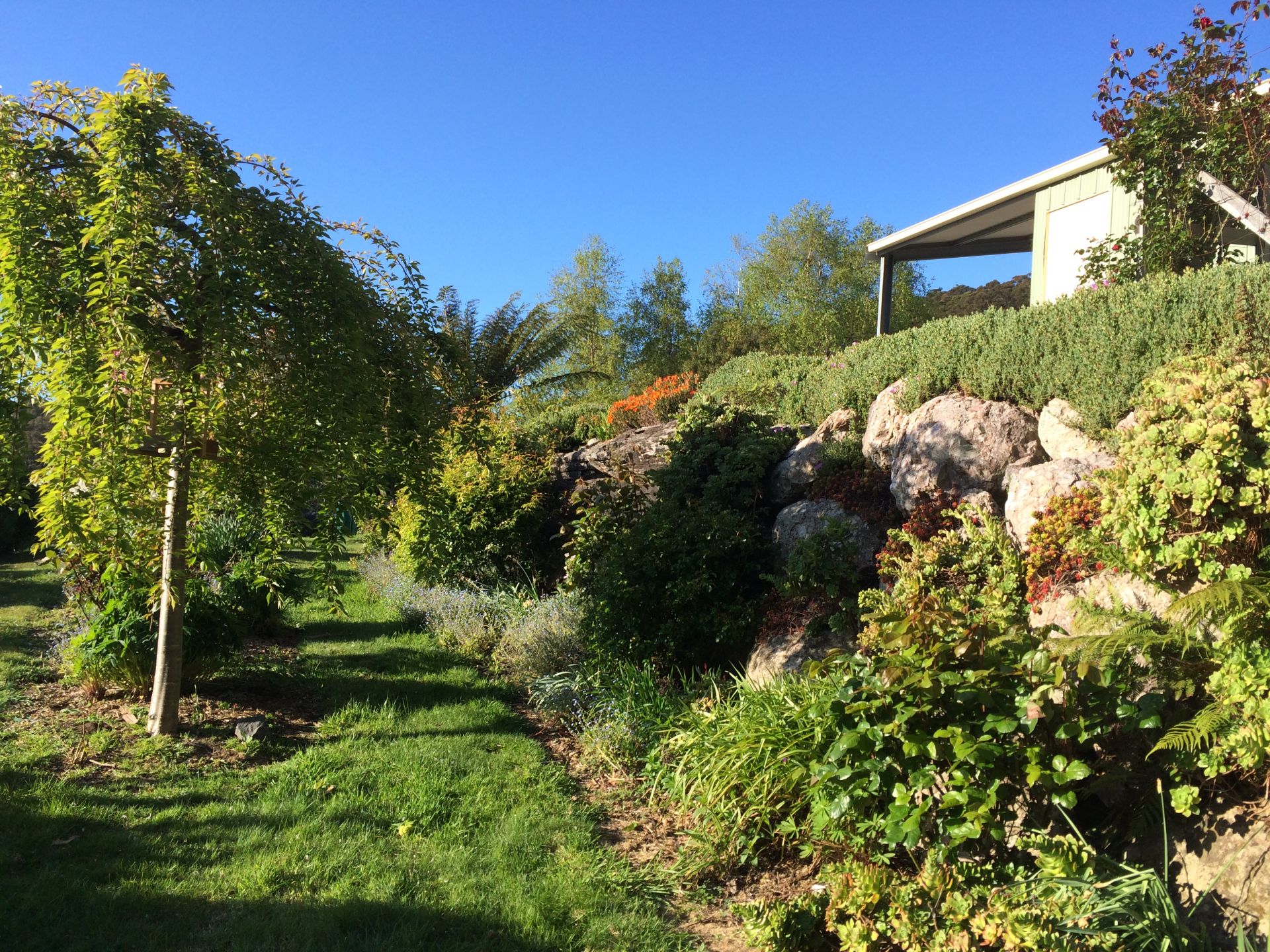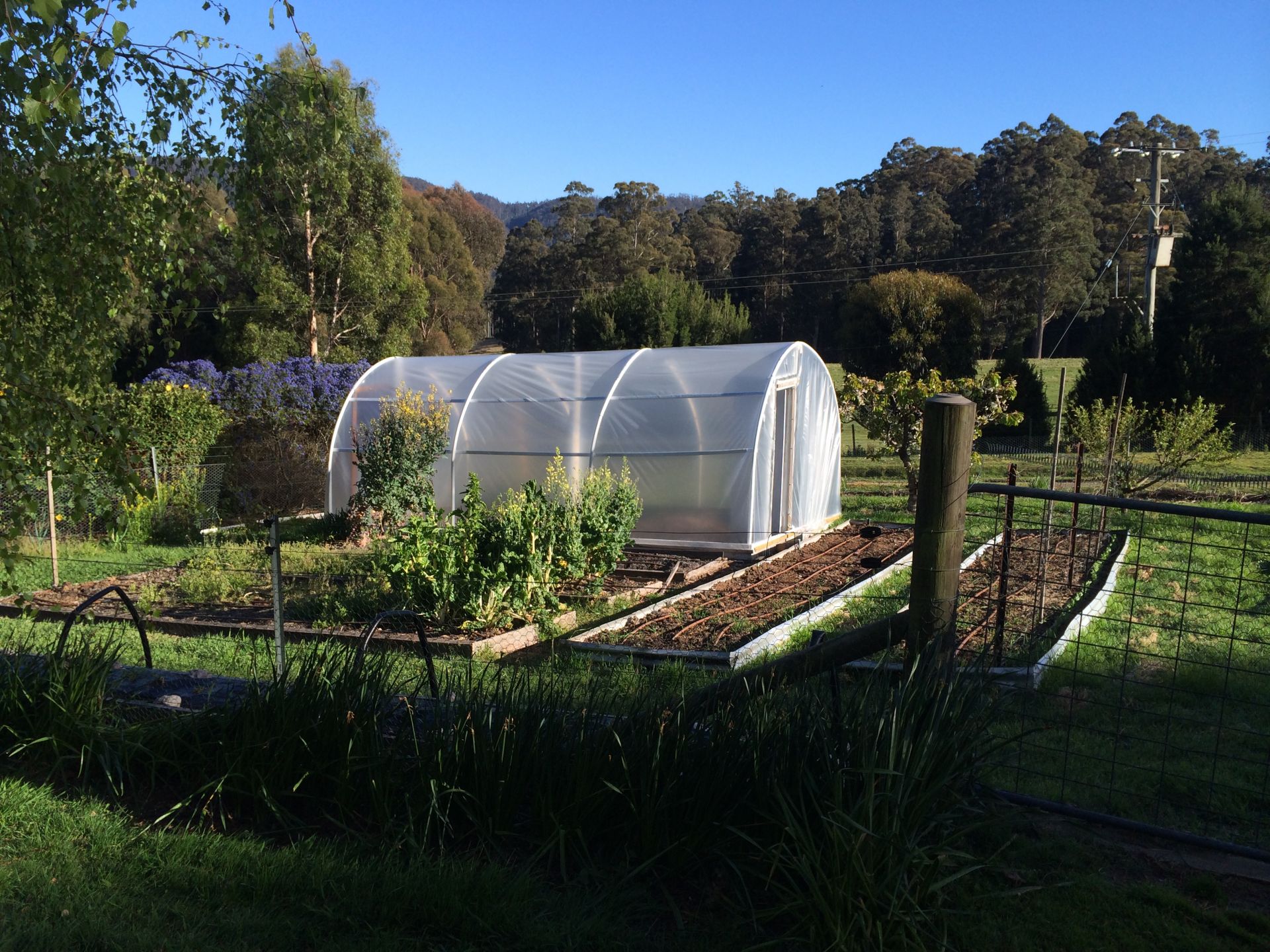 20000L plus 5000L garden water tanks plus electric irrigation pump. New Honda pump at creek plus a hydraulic ram pump (requires no electricity) that works all summer long. Most of the poly irrigation underground and services the whole house grounds and stock paddocks. Orchard, garden beds and green house. Well presented garden sheds. Blueberries (produce 100kg +), raspberries, strawberries, loganberries, thornless blackberries, currants, mulberries, plums, peaches, nectarines, apricots, apples, cherries, pears, olives, almonds, chestnuts, hazelnuts, grapefruit, orange, lemons, grapes, feijoas, pepper berries, bay tree, figs, kiwi fruit, tamarillos, gooseberries, avacados and more. Lots of ornamentals shrubs, ground covers and bulbs (daffodils, tulips, hyacinth, irises and dahlias).