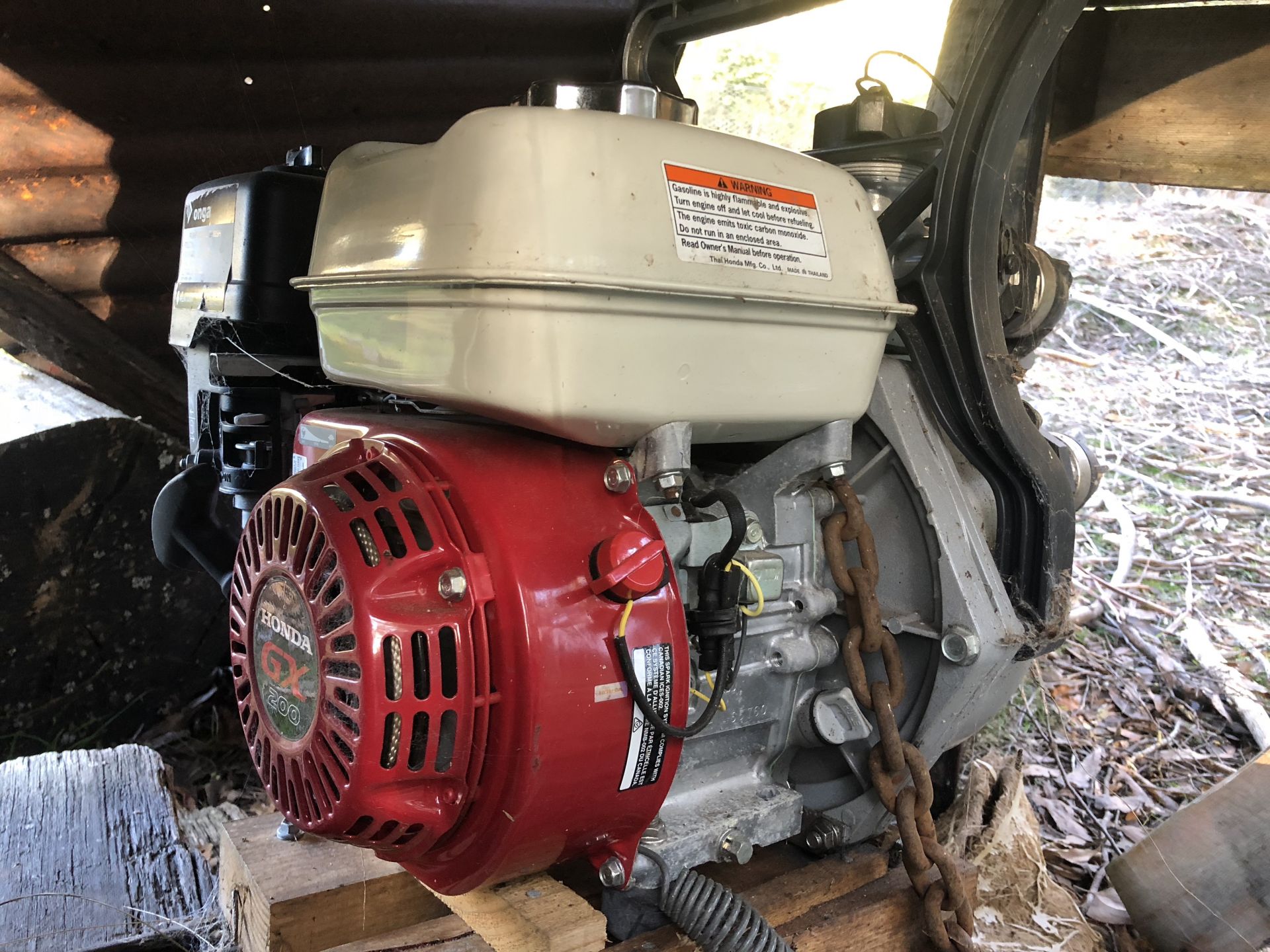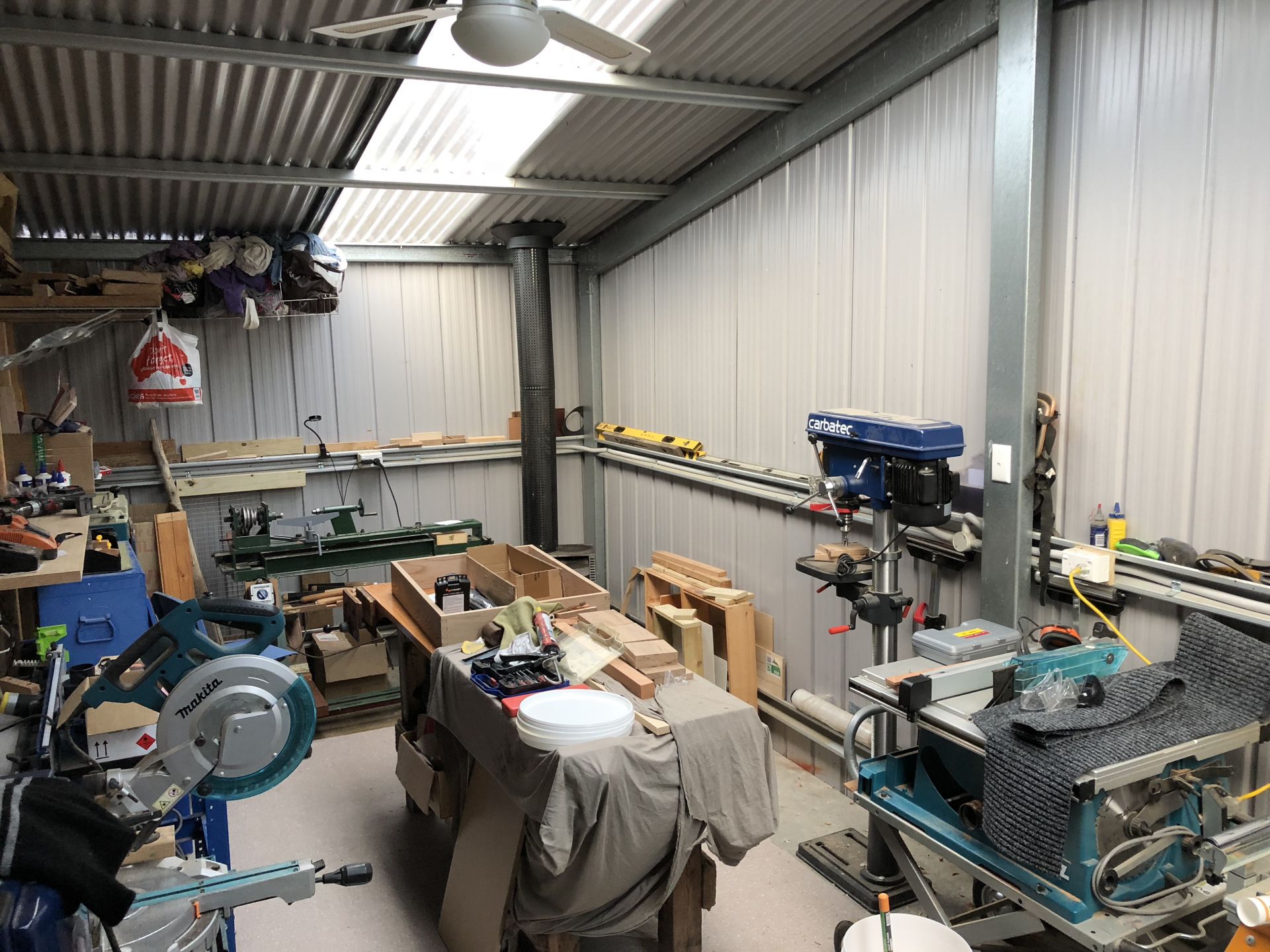 7x12 two car powered garage/shed and workshop. Large wood sheds fully stocked with years of firewood. 20 foot waterproof, secure container with ventilation whirlybird.