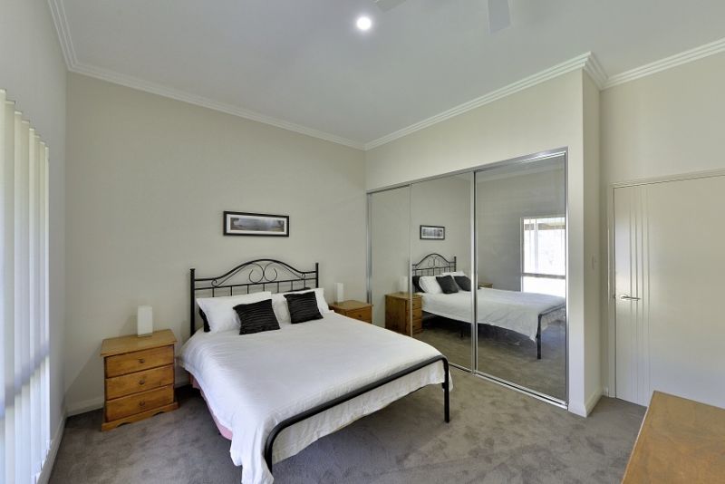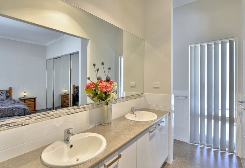 Master suite is a sumptuous retreat with wall to wall carpeting, built-in mirrored wardrobes, ceiling fan, downlights and direct access to Spa on the back veranda. There is also sliding door access to the front veranda and a beautiful ensuite with his and hers vanities, private WC to one side and shower room to the other side.