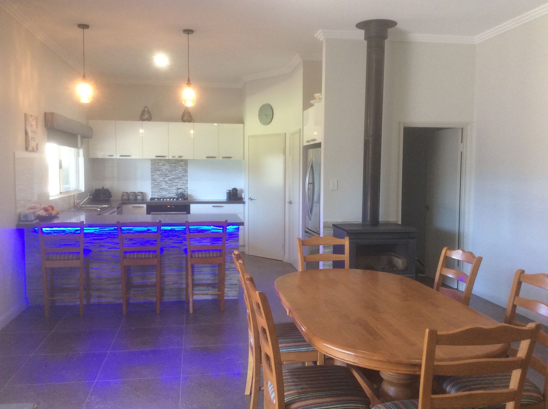 The well appointed dream kitchen has Gas Cooktop, Electric Oven, Rangehood, built-in dishwasher, large built-in pantry, quality stone bench tops and an absolute bonus of a built-in floor to ceiling appliance cupboard for all your extra large electrical gadgets. Open plan family room and dining area.