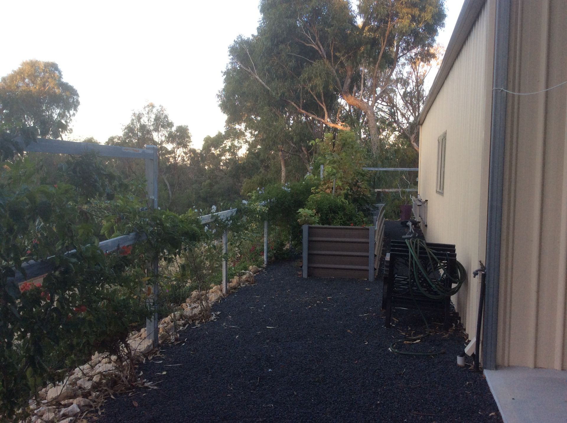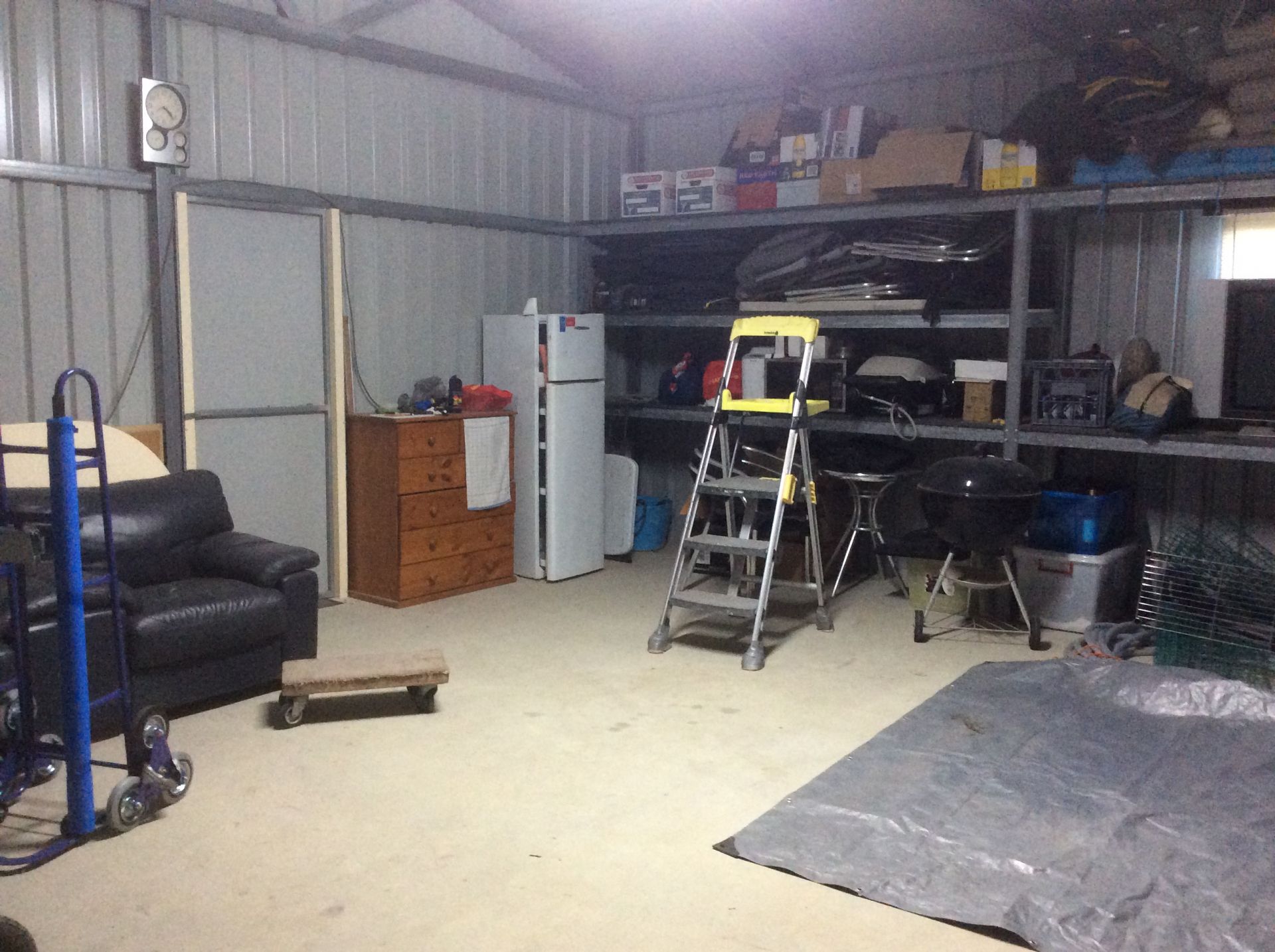 The garage/shed/workshop is HUGE with room to park 9 vehicles under cover. Plenty of room for boys toys, truck, trailers, boat and full height caravan.