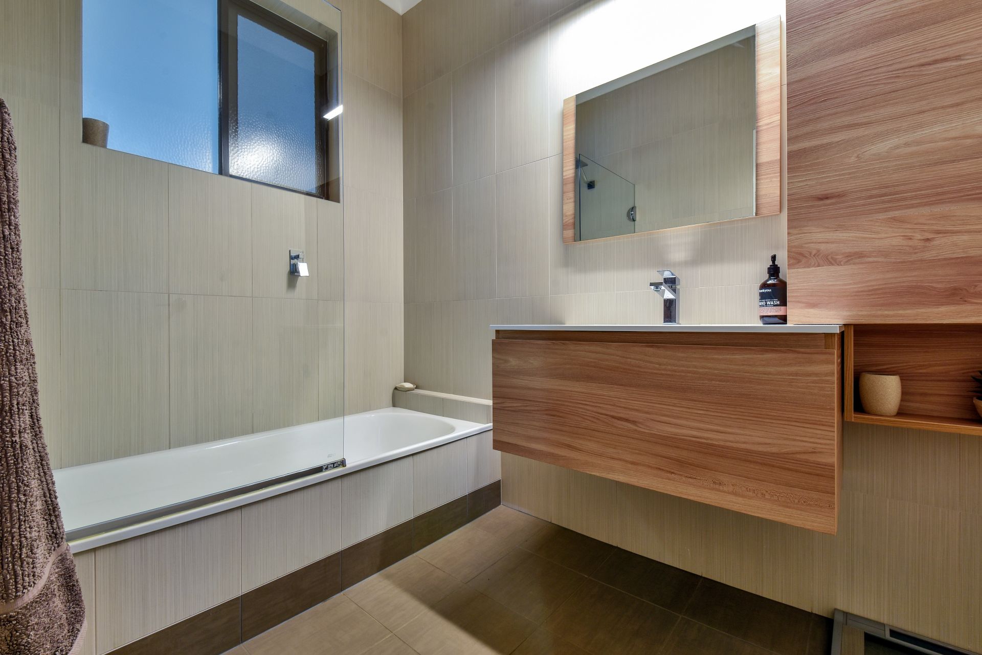 • Immaculate main bathroom with floor-to-ceiling tiles, bath/shower and