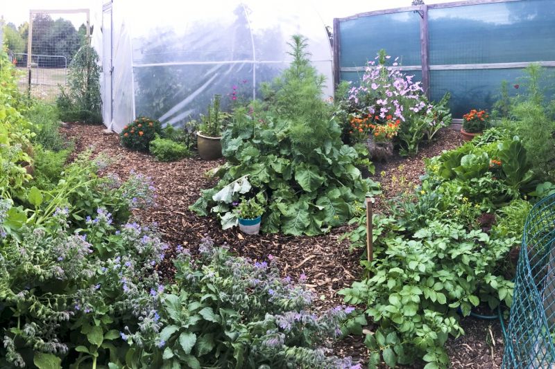 Established / fenced vegetable gardens with hothouse