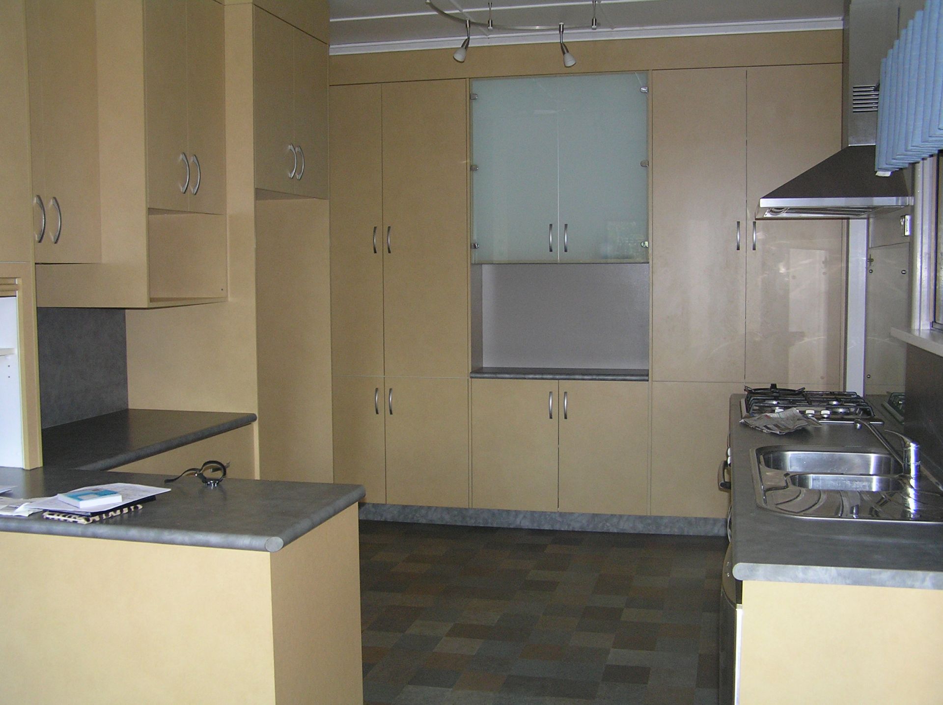 - modern kitchen with lots of storage + built in dishwasher, oven and hob