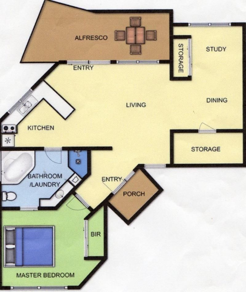 Large master bedroom and bathroom, complete with a relaxing spa bath.Flexible space for use as either a second bedroom or additional living space.