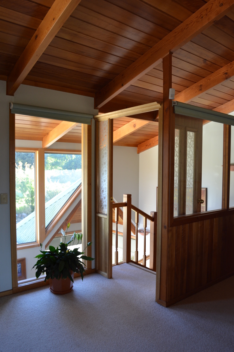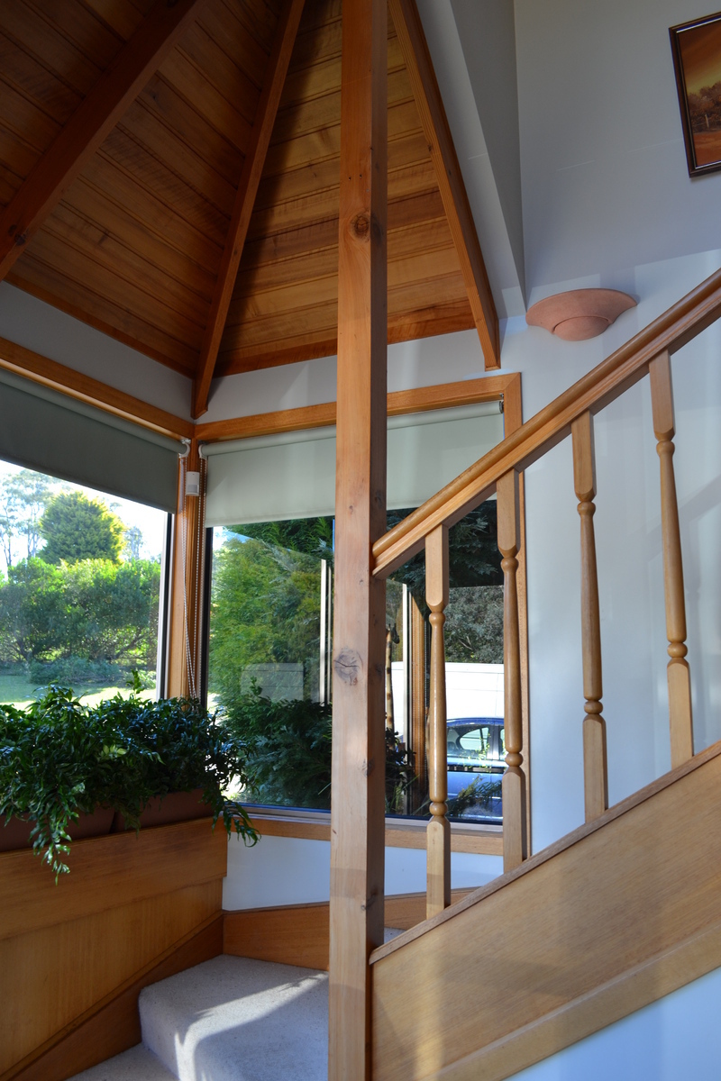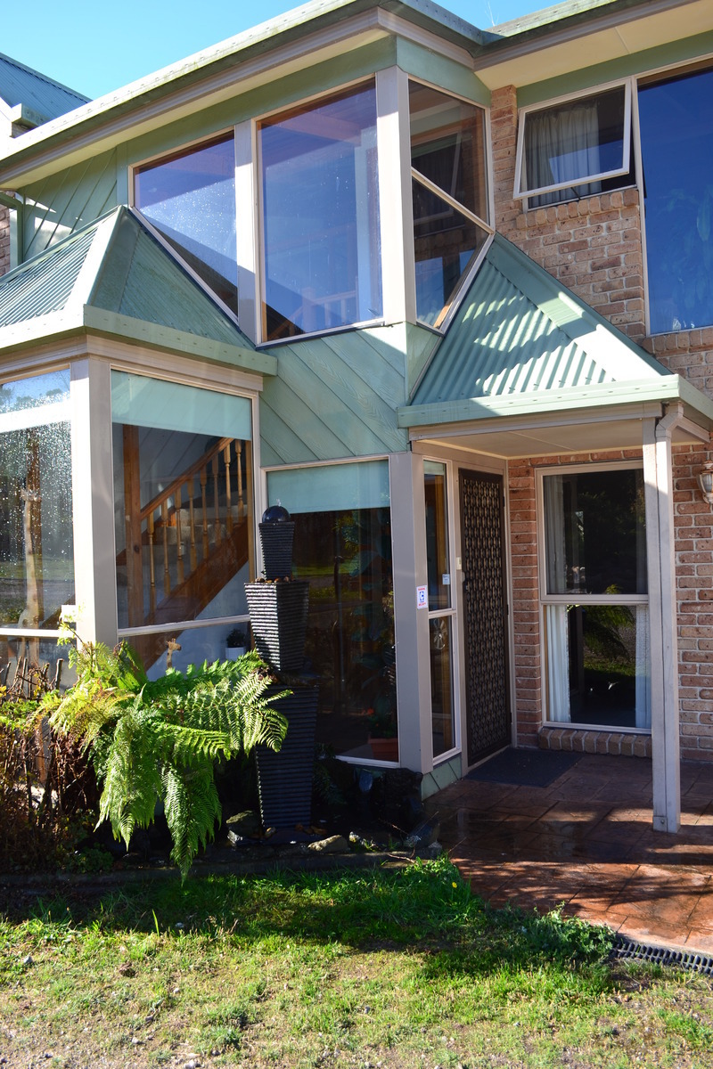 A large lounge with an open fireplace in the brick feature wall and raked timber ceilings that draw the eye to the estuary beyond is the focal point of this wonderful home.
