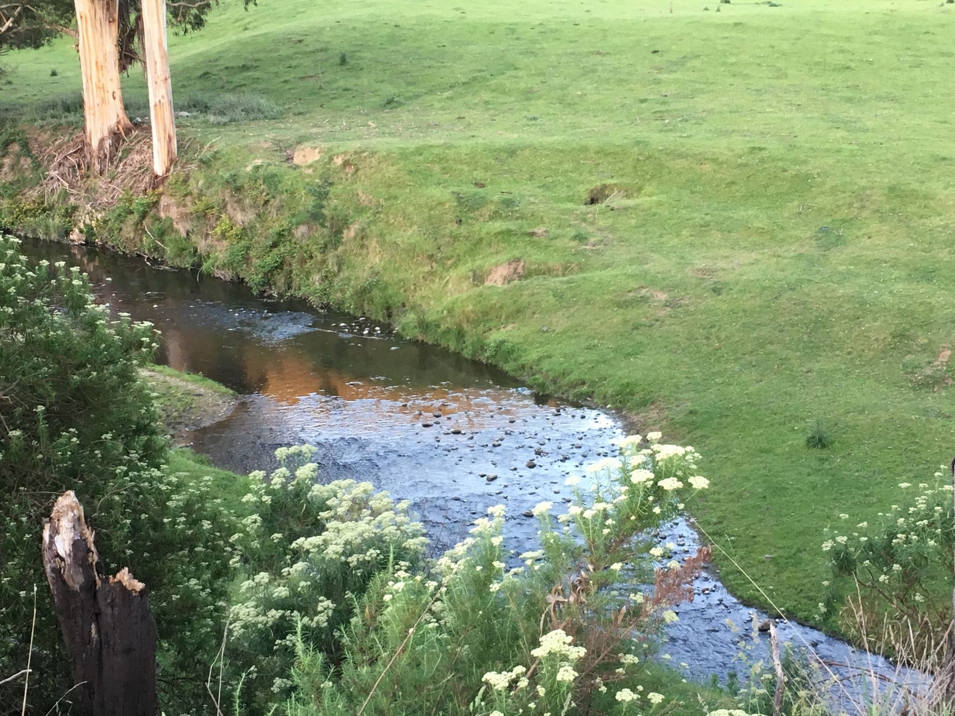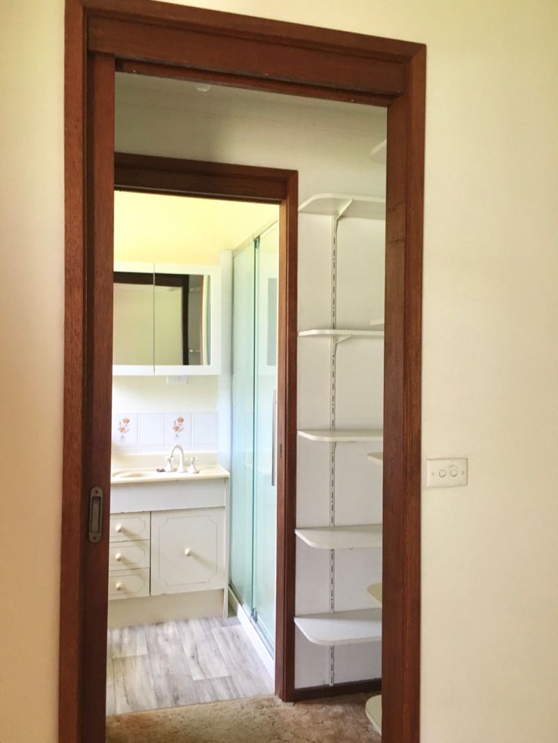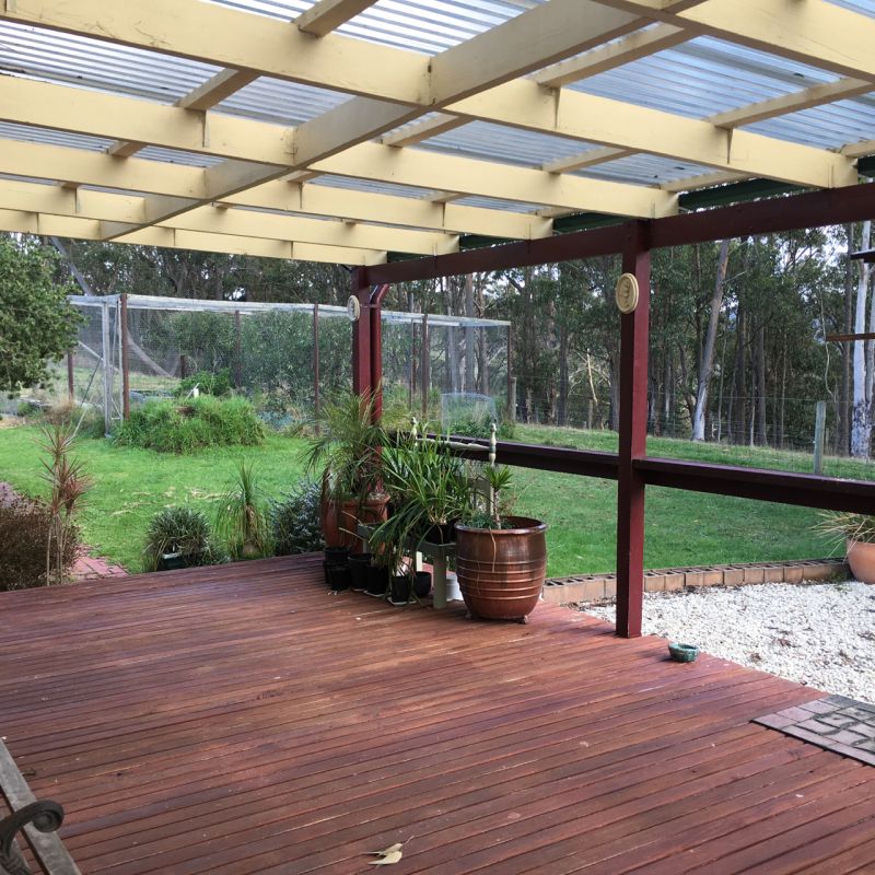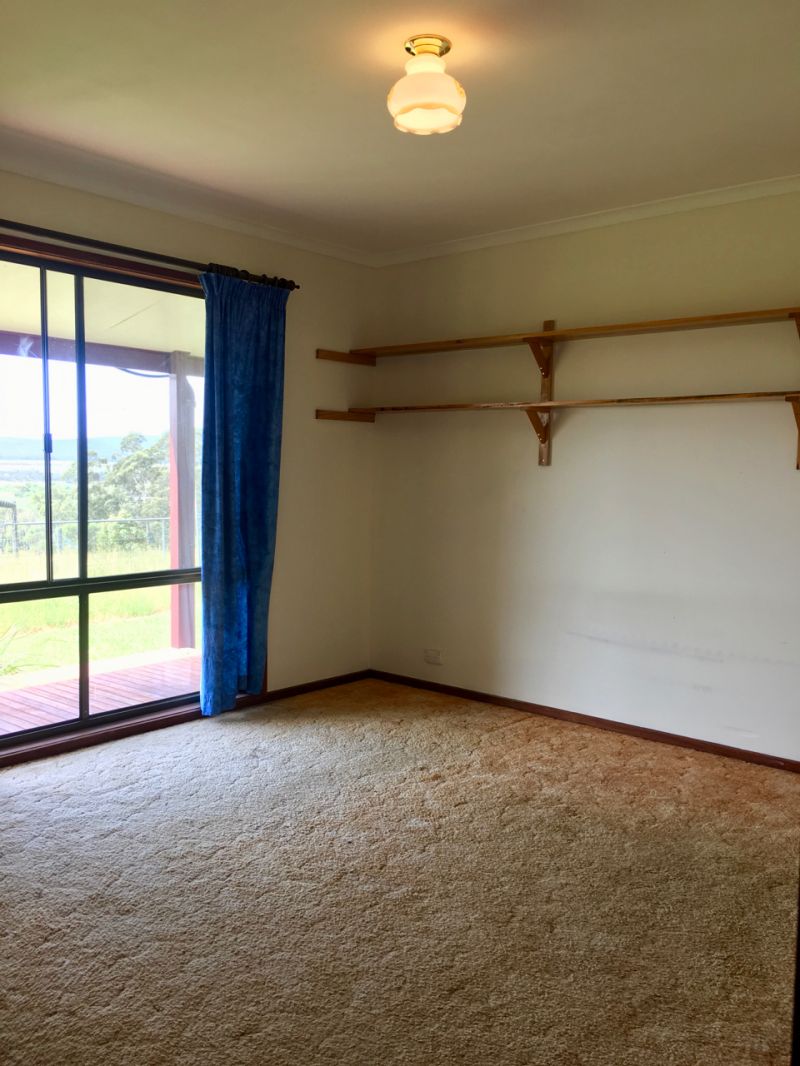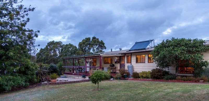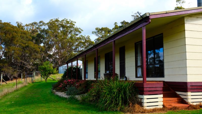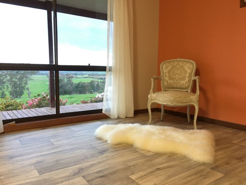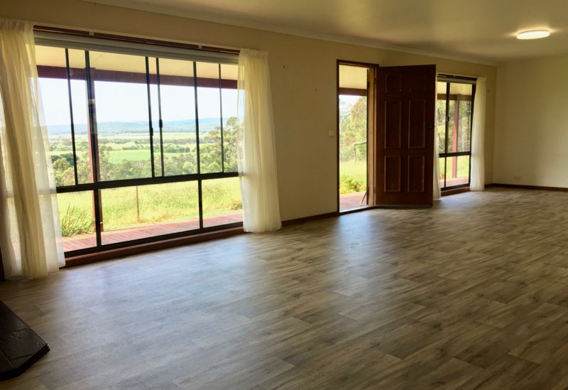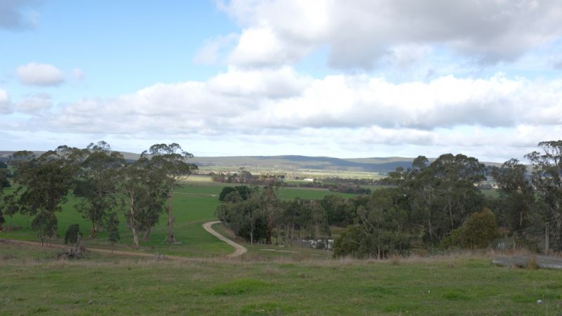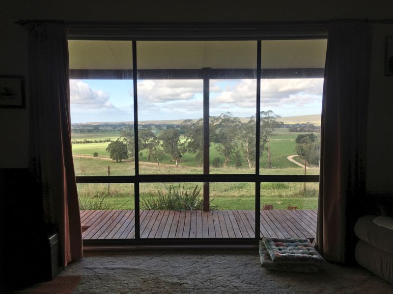 House is located on 18 acres of undulating farm land, on top of a hill overlooking a beautiful valley, with gum trees on 2 thirds of perimeter, and a small, fenced-off stand of native gums.