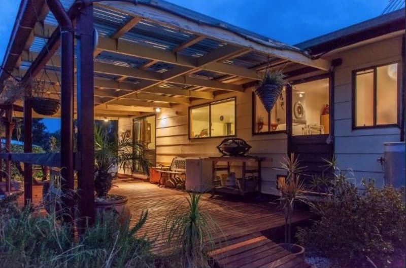 At the other end of the circular driveway is a single bedroom , 0.5 bathroom bungalow, with power, water, and again spectacular views. Its made from beautiful heritage materials, such as lovely baltic pine floors and solid timber fixtures.