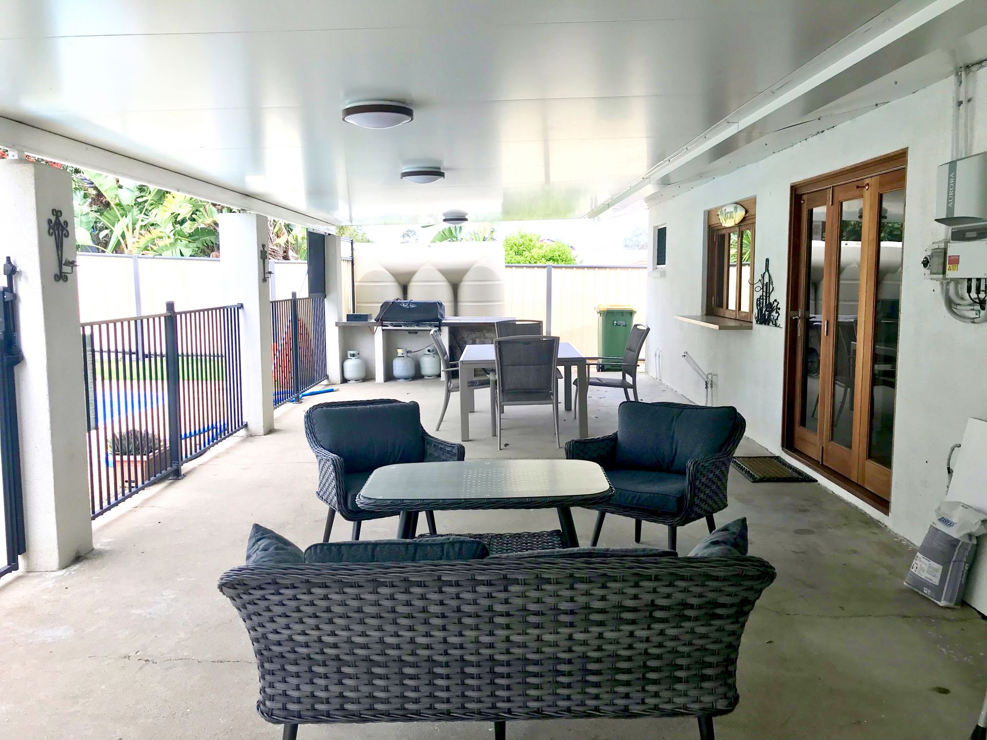 The huge rear patio with built-in BBQ and good size pool provides ample space for family gatherings.