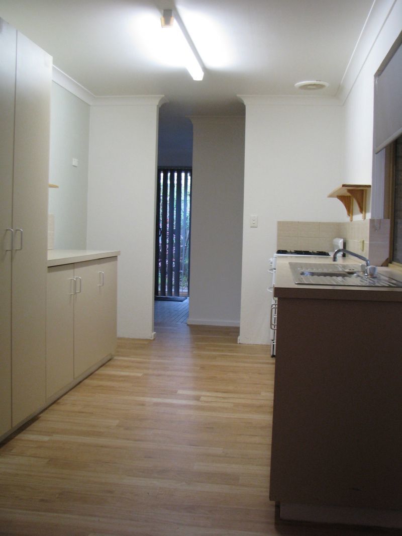 The open plan living/dining area flows into the kitchen and also through to the back patio and yard. The kitchen has ample storage and a gas freestanding oven.