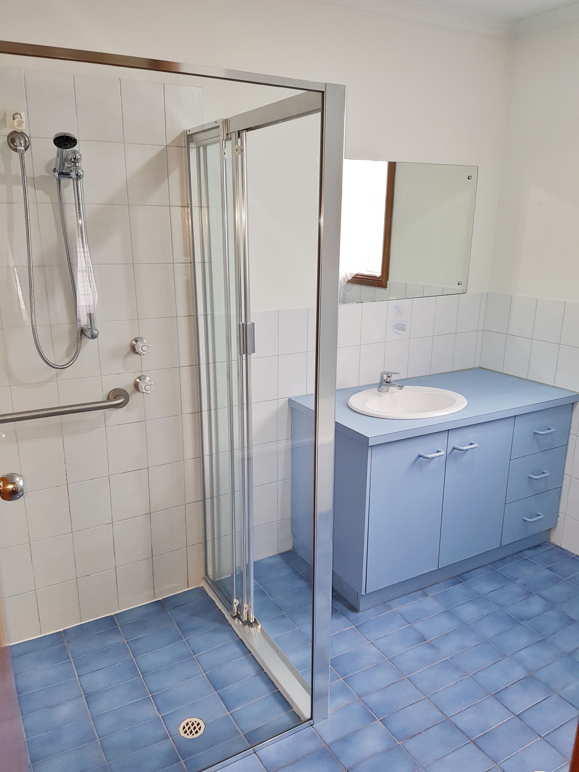 The bathroom includes both shower and bath with new shower screen and a new basin.