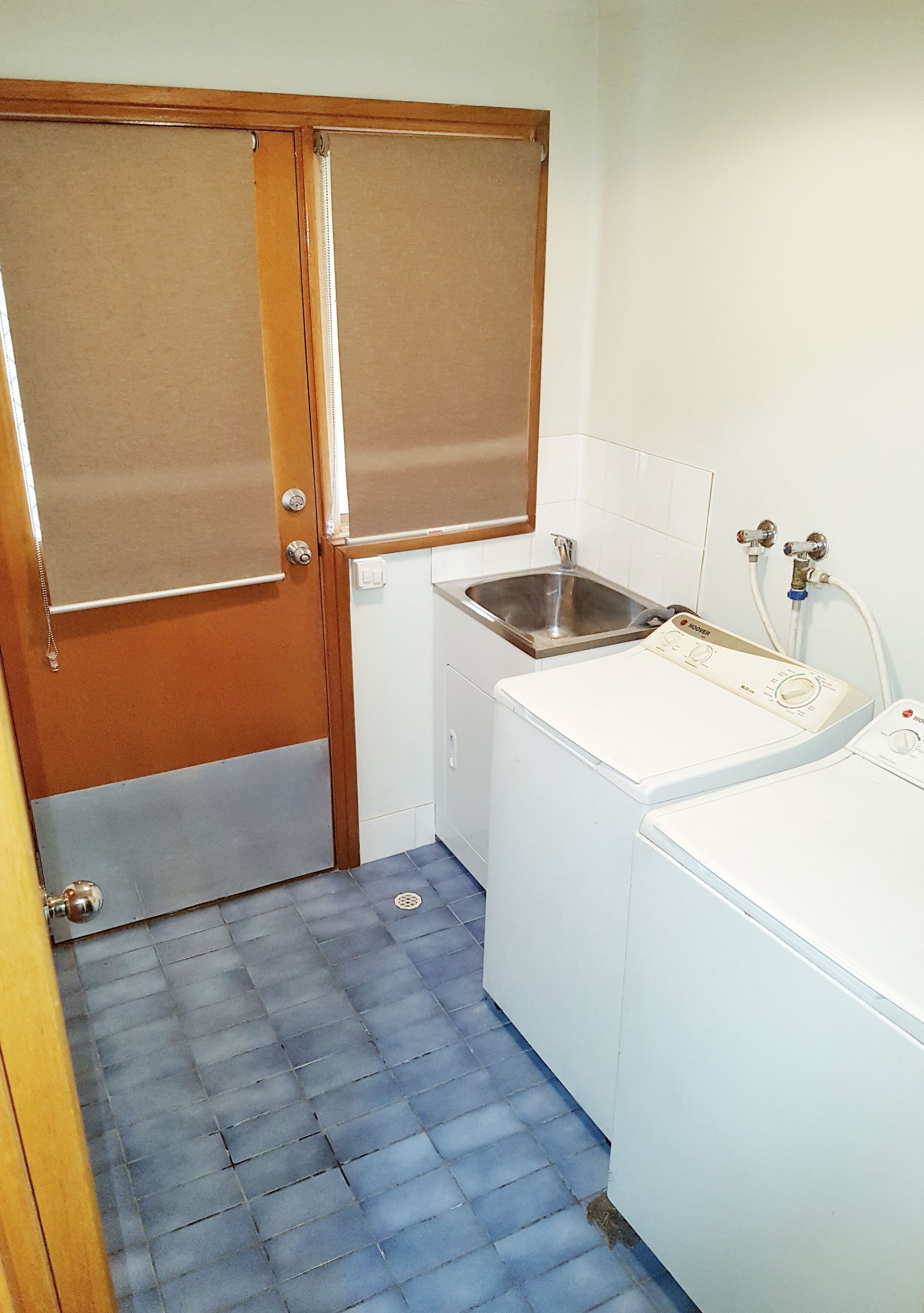 Separate laundry space to put two washing machines install with new stainless steel sink.