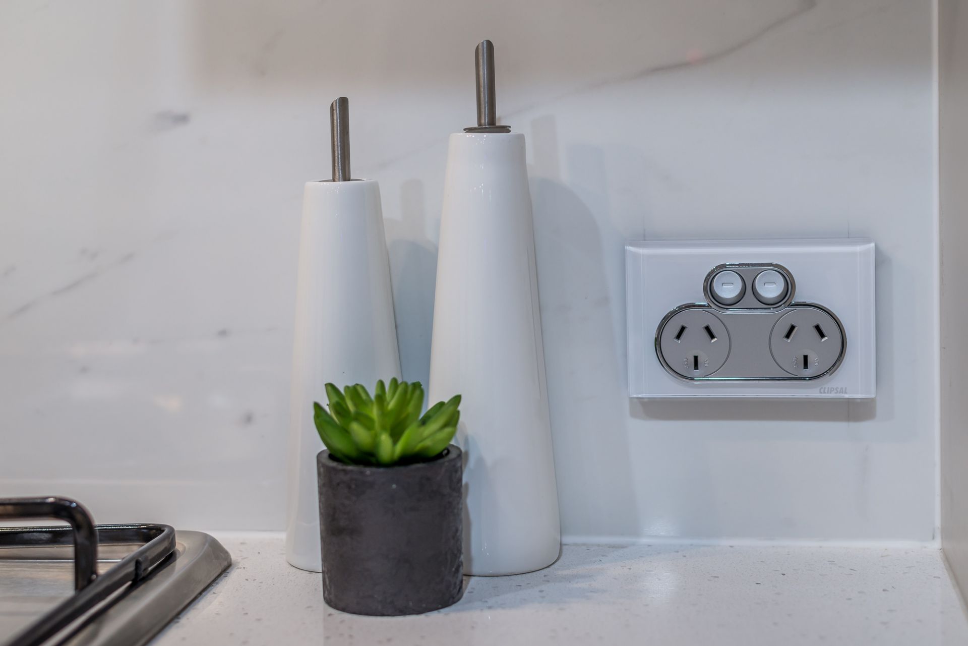 • Large remote-controlled double garage with storage, internal shopper's entry, outdoor access, commercial-grade 2 Pack epoxy-finish flooring and a Centurion Sunshine Series roller-door with polycarbonate infills