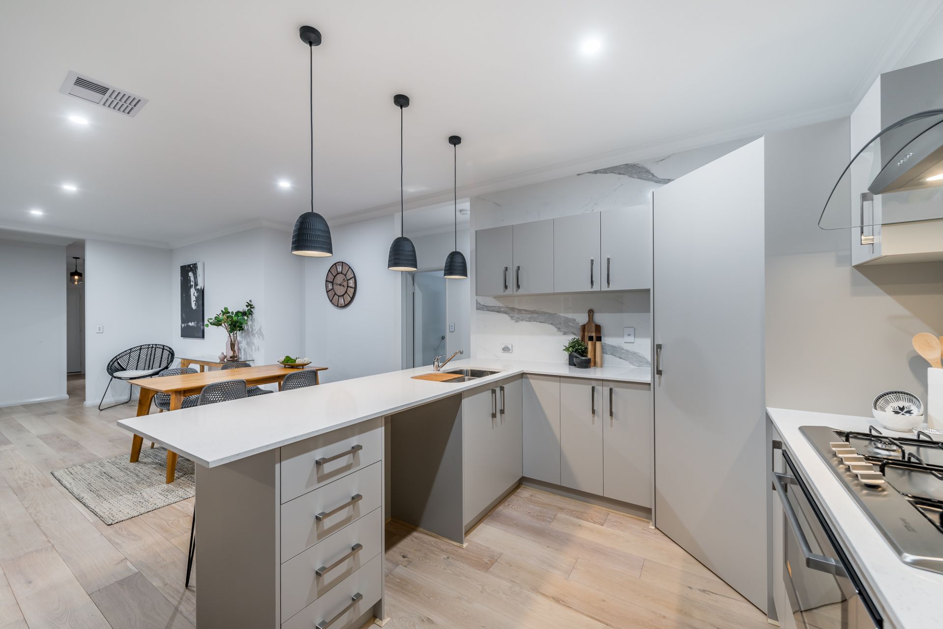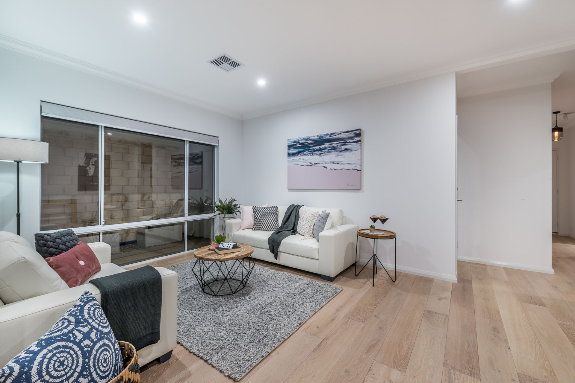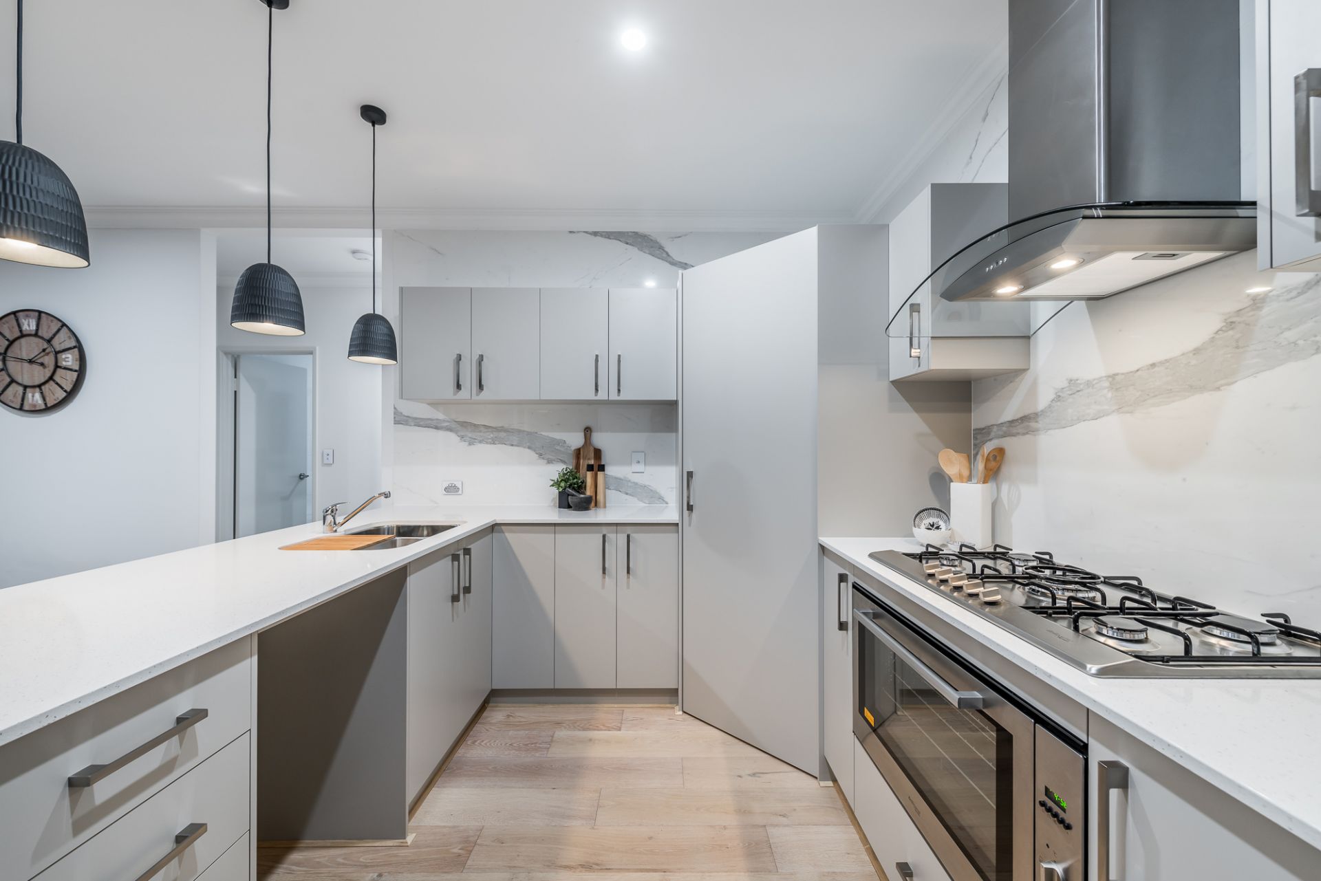 Combining cul-de-sac tranquillity with a secure position in the middle of three brand-new Nate Peridot-inspired villas, this immaculate three bedroom two bathroom residence utilises only the finest in fitting and fixtures with spectacular low-maintenance living firmly in mind. Beyond a stylish façade lies a functional floor plan with two separate living areas - including a carpeted media room where the closing of double doors ensures complete privacy. The main hub of the house is a spacious open-plan living, dining and designer kitchen area that extends outdoors to a delightful alfresco courtyard for easy entertaining whilst also boasting sparkling 20mm Essastone bench tops, Bella Statuario range large format porcelain panel splashbacks, Laminex nickel-brushed handles, soft-closing cabinetry, Caroma tap ware, Clark "Monaco" Scalloped Undermount double sink bowls, a 900mm Bellissimo Technika five-burner gas cook top and oven, a range hood and a breakfast bar for casual meals. A north-facing master-bedroom suite at the front of the home is light and bright, featuring full-length and height mirrored built-in wardrobes and Basswood plantation shutters, alongside a sumptuous fully-tiled ensuite bathroom that comprises of a double shower, twin stone vanities and a toilet. Completing this magnificent package is a remote-controlled double garage with a storage area and so much more. This stunning home which is NBN ready and Wi-Fi installed is nestled within the sought-after Churchlands Senior High School catchment/intake area. Conveniently located just a few minutes away from public transport, the freeway, the revamped Scarborough Beach foreshore, Lake Karrinyup Country Club, Hamersley Public Golf Course and Karrinyup Primary School, this sublime abode also finds itself perched only footsteps from the Karrinyup Shopping Centre redevelopment, picturesque Lake Gwelup, Newborough Primary School, Karrinyup Leisure Centre and a plethora of local parklands and reserves. Let this be your new beginning!
