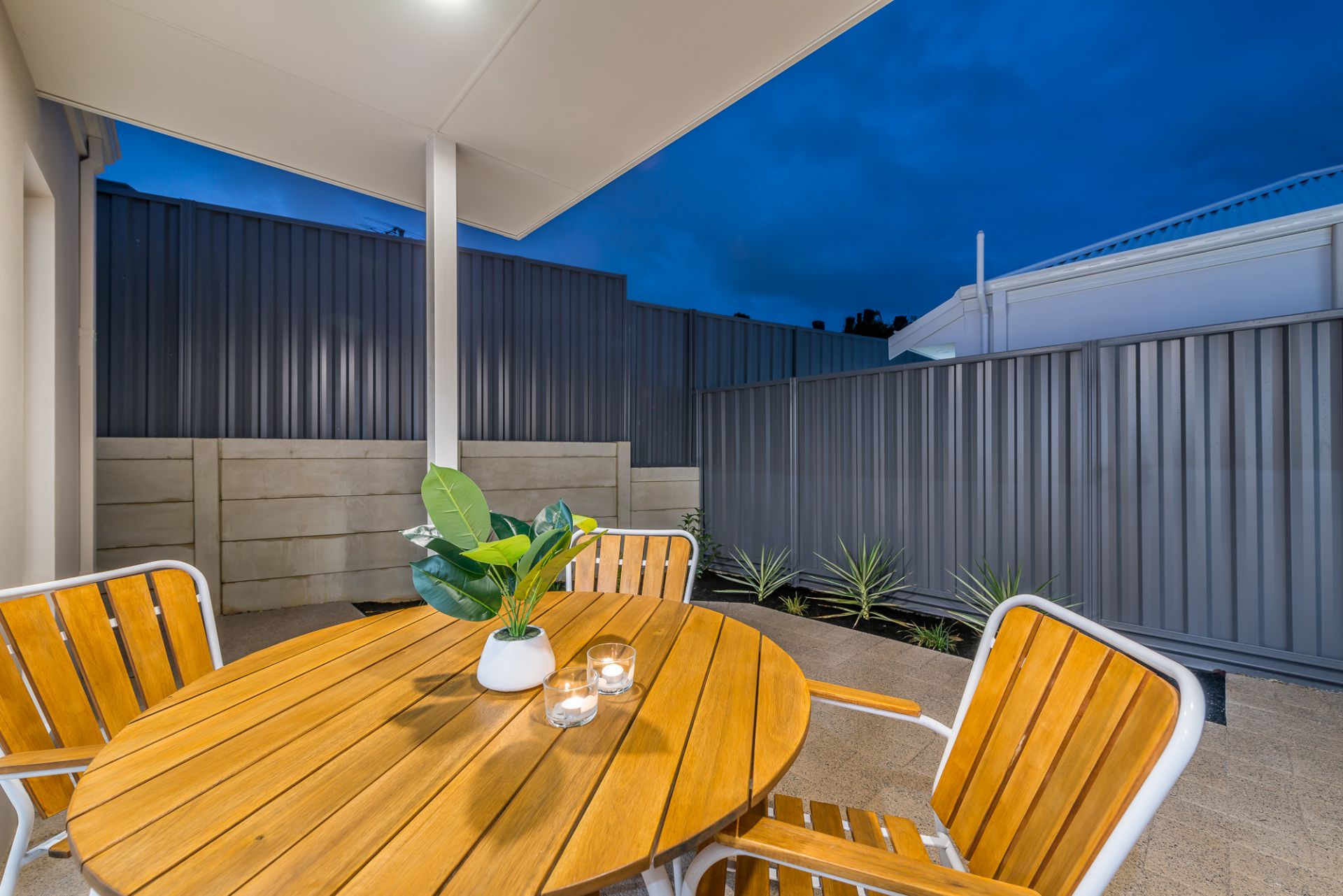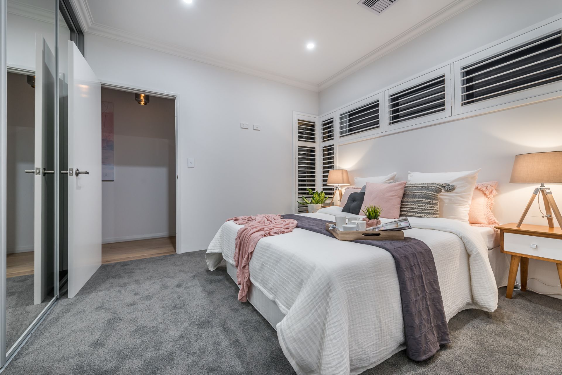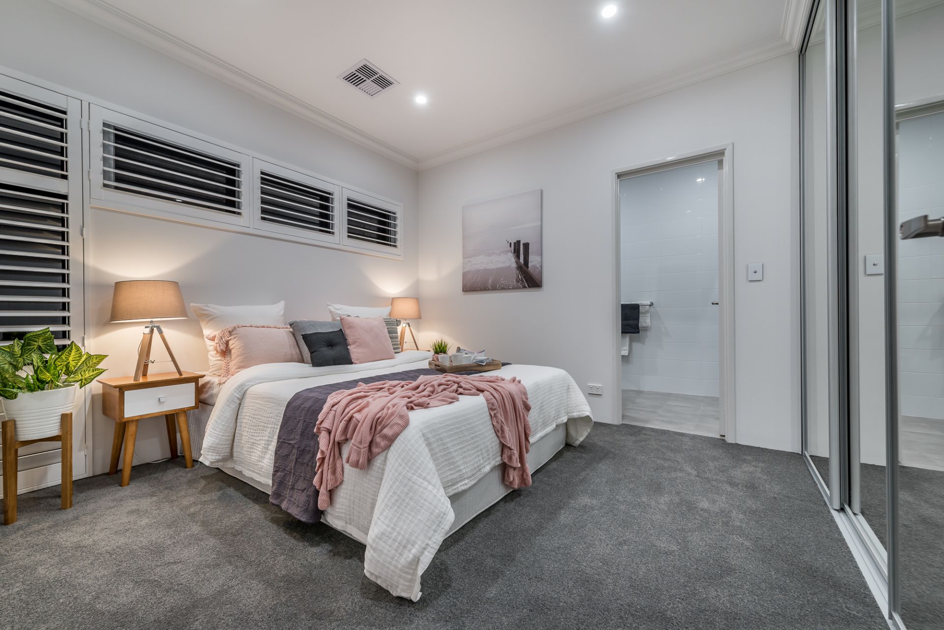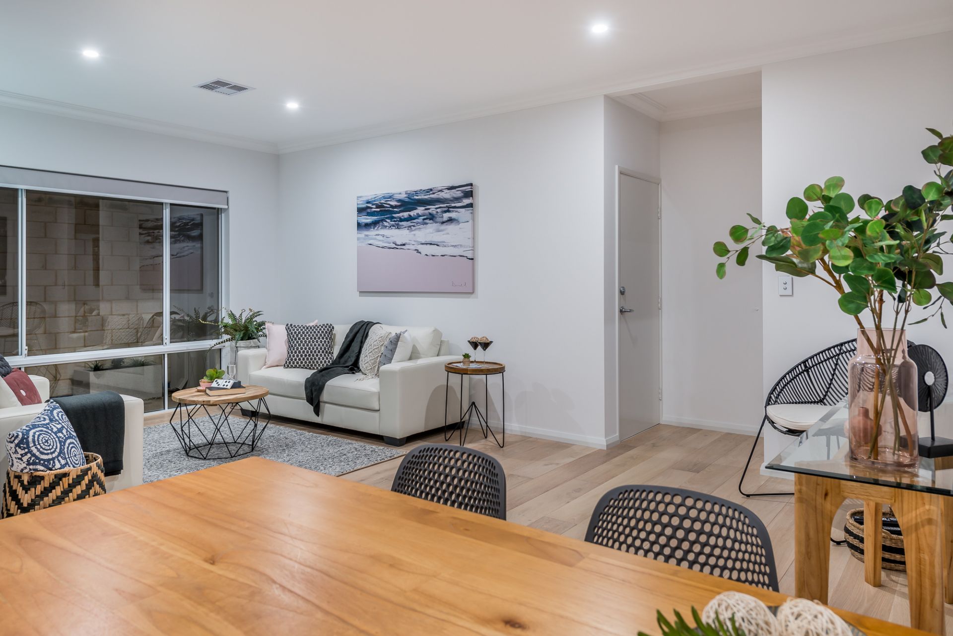 Combining cul-de-sac tranquillity with a secure position in the middle of three brand-new Nate Peridot-inspired villas, this immaculate three bedroom two bathroom residence utilises only the finest in fitting and fixtures with spectacular low-maintenance living firmly in mind. Beyond a stylish façade lies a functional floor plan with two separate living areas - including a carpeted media room where the closing of double doors ensures complete privacy. The main hub of the house is a spacious open-plan living, dining and designer kitchen area that extends outdoors to a delightful alfresco courtyard for easy entertaining whilst also boasting sparkling 20mm Essastone bench tops, Bella Statuario range large format porcelain panel splashbacks, Laminex nickel-brushed handles, soft-closing cabinetry, Caroma tap ware, Clark "Monaco" Scalloped Undermount double sink bowls, a 900mm Bellissimo Technika five-burner gas cook top and oven, a range hood and a breakfast bar for casual meals. A north-facing master-bedroom suite at the front of the home is light and bright, featuring full-length and height mirrored built-in wardrobes and Basswood plantation shutters, alongside a sumptuous fully-tiled ensuite bathroom that comprises of a double shower, twin stone vanities and a toilet. Completing this magnificent package is a remote-controlled double garage with a storage area and so much more. This stunning home which is NBN ready and Wi-Fi installed is nestled within the sought-after Churchlands Senior High School catchment/intake area. Conveniently located just a few minutes away from public transport, the freeway, the revamped Scarborough Beach foreshore, Lake Karrinyup Country Club, Hamersley Public Golf Course and Karrinyup Primary School, this sublime abode also finds itself perched only footsteps from the Karrinyup Shopping Centre redevelopment, picturesque Lake Gwelup, Newborough Primary School, Karrinyup Leisure Centre and a plethora of local parklands and reserves. Let this be your new beginning!