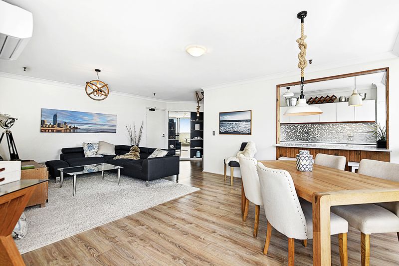 Ocean views all the way to Coolangatta from this beautifully renovated, light and airy, 3 bedroom, 2 bathroom apartment on the Esplanade.