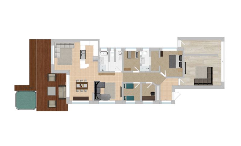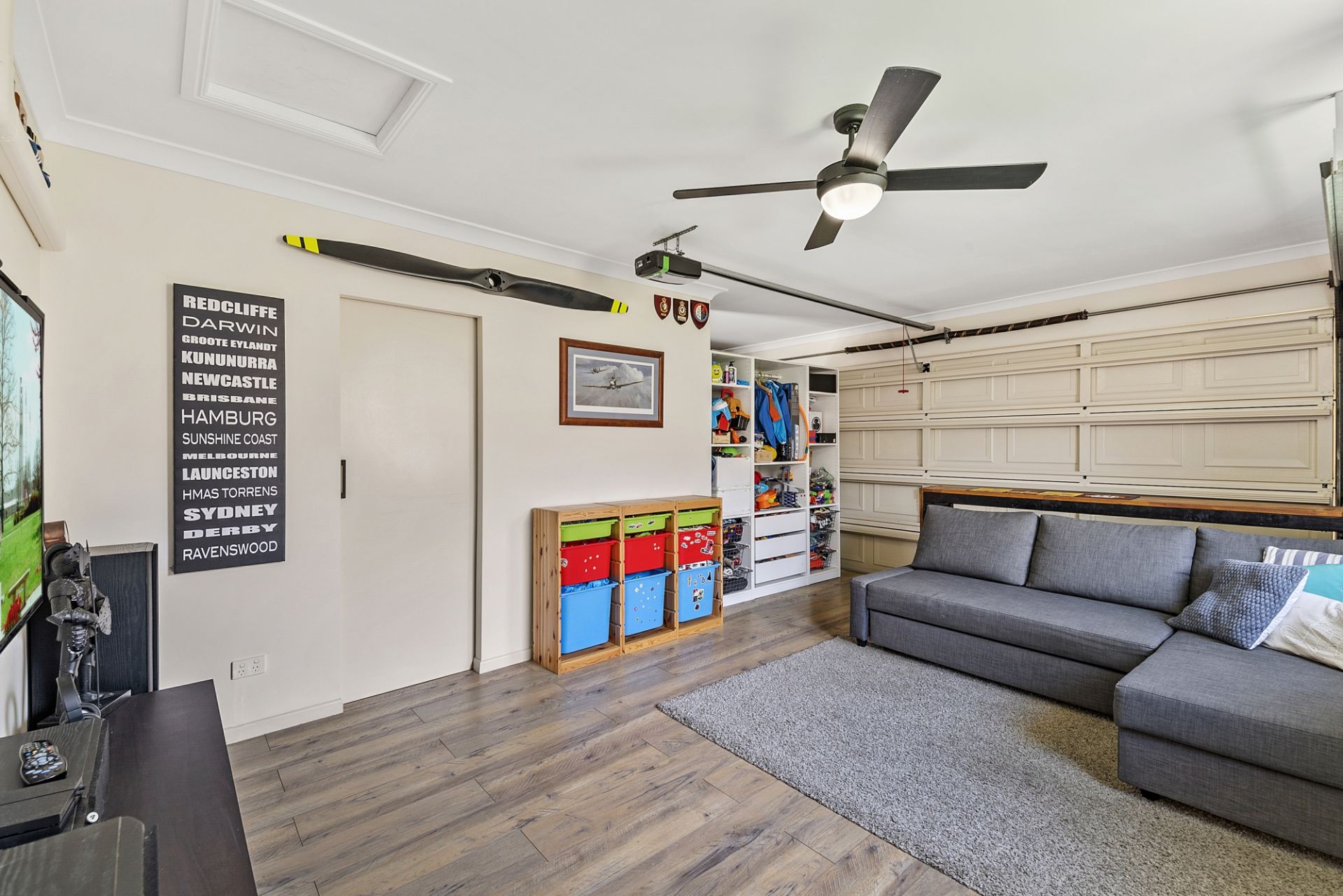 The double garage has been transformed into a multipurpose living area, with separate workshop. Ideal for use as either playroom or separate living space/bedroom. Rear access from the garage leads to 2 storage sheds, water tank and self-watering vegetable planters.