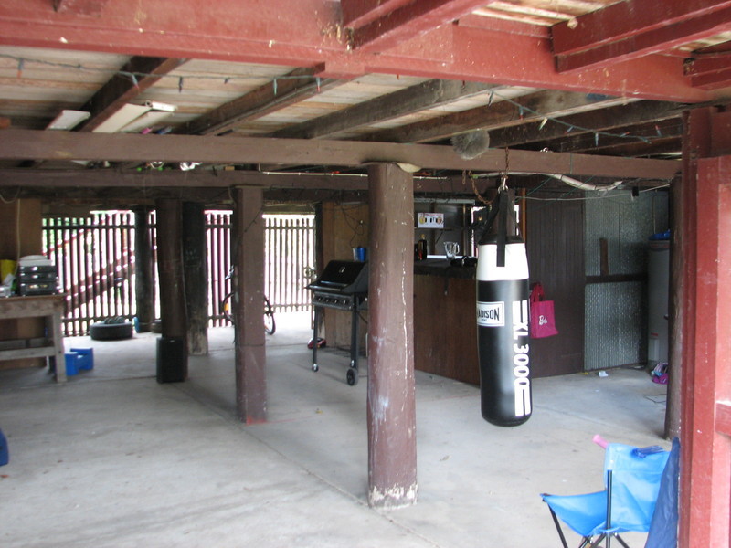 Fully concreted under house with bar, tool shed, bathroom, car space, storage and laundry.