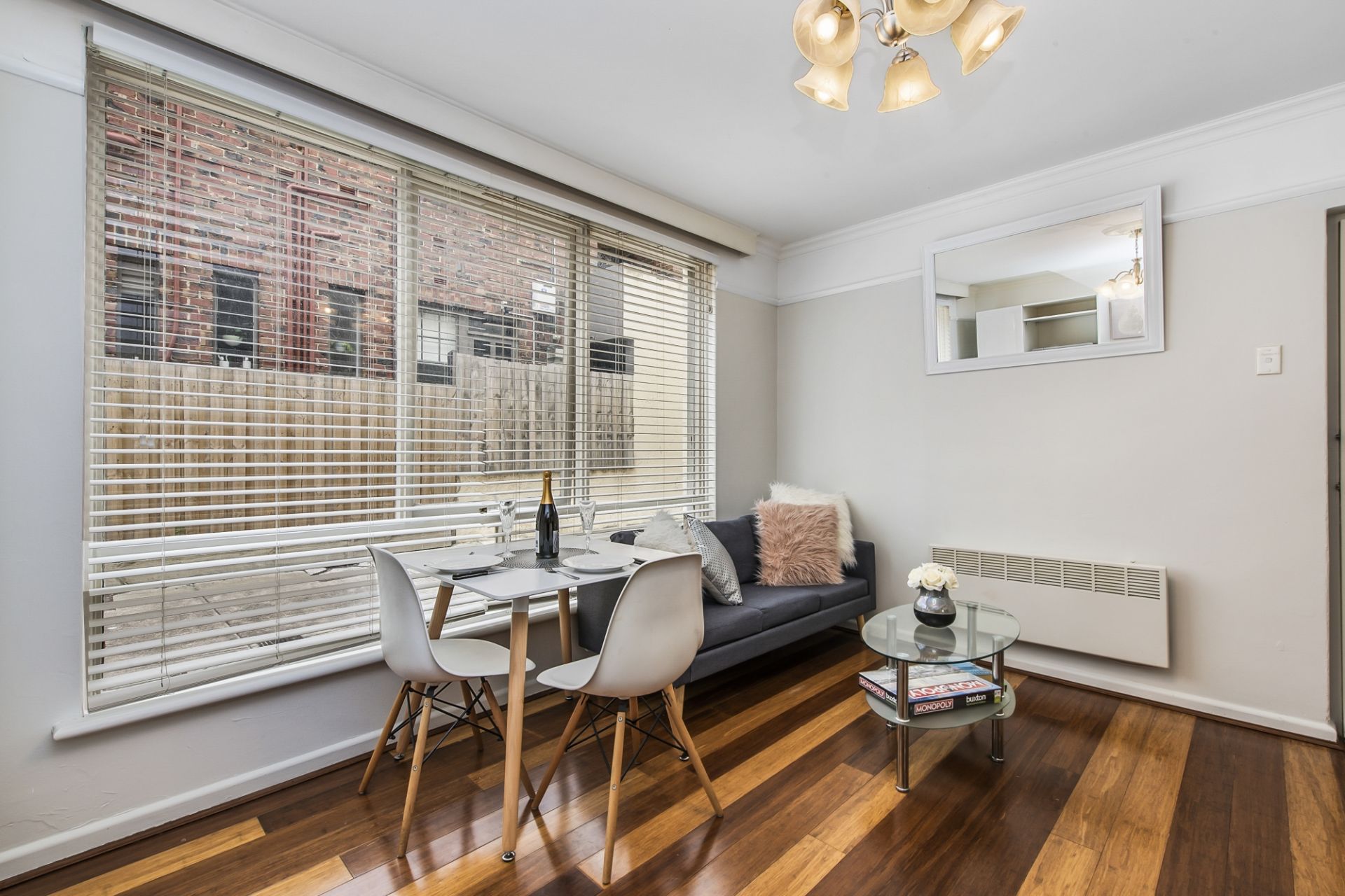 Recently renovated, with stunning bamboo floor, new carpet, new blinds and some some unexpected period features (in the main living area).