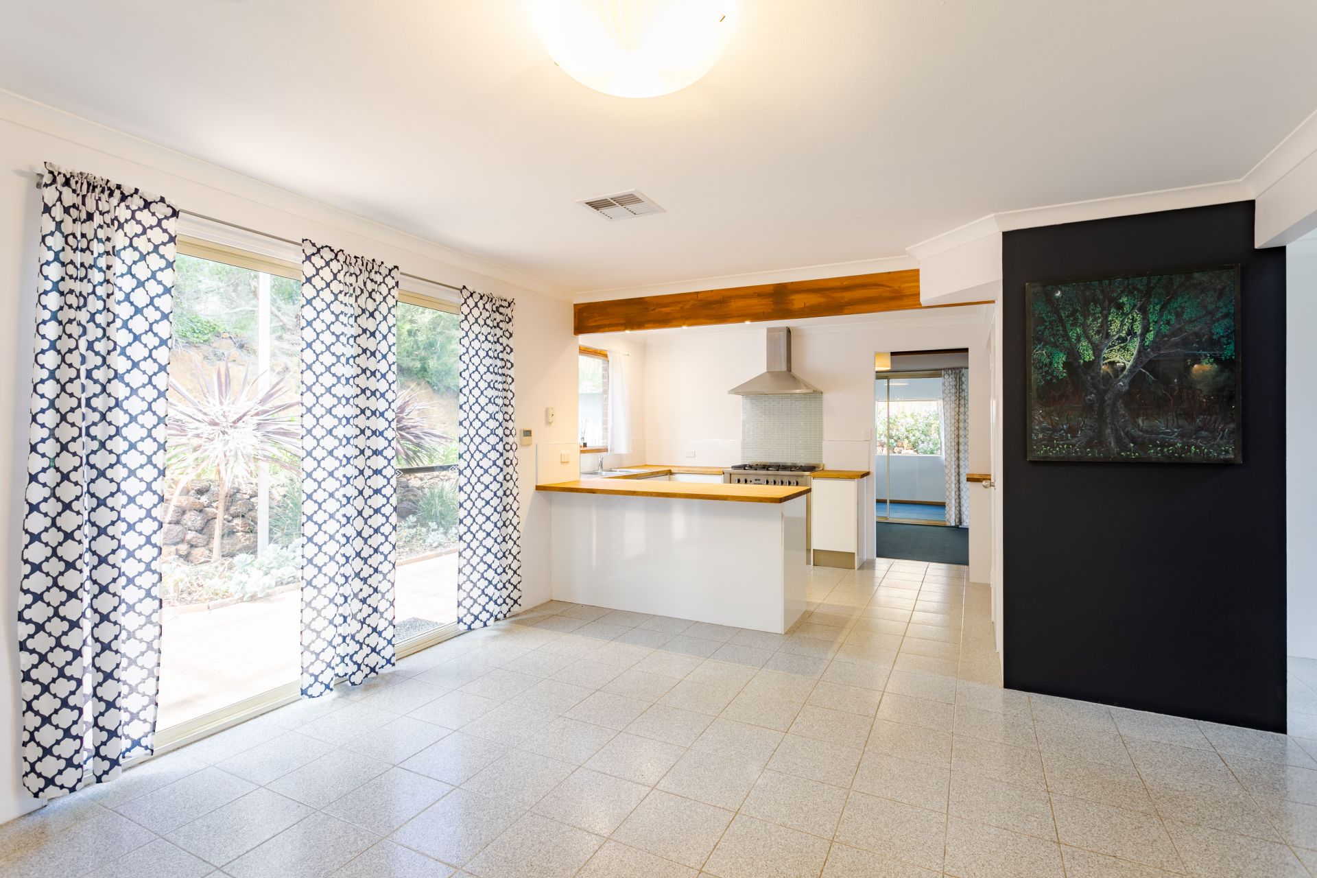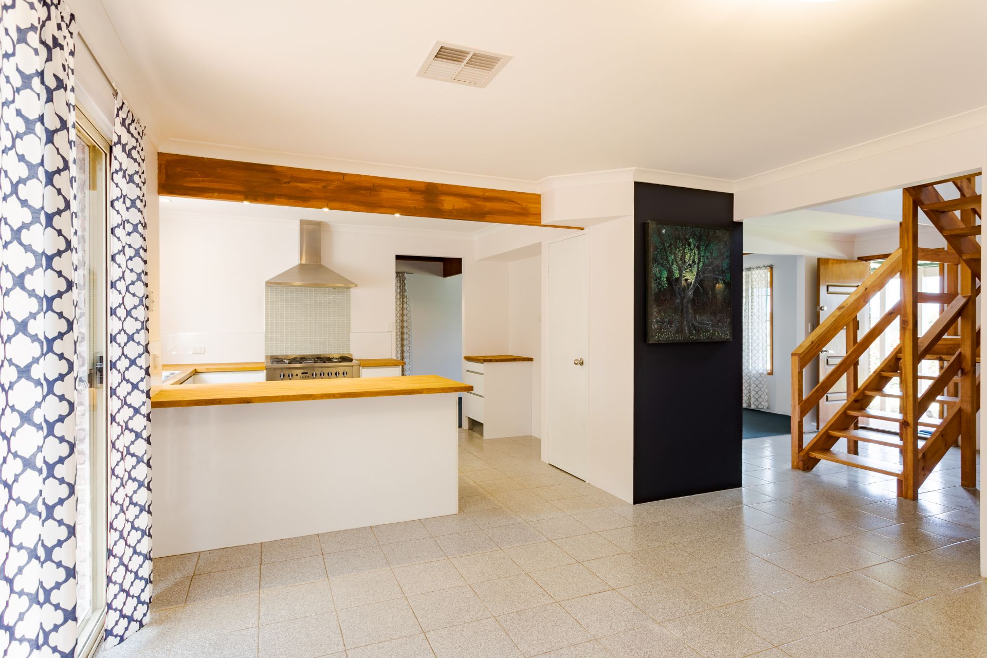 Fully renovated kitchen with a full size gas cooktop, custom oak bench tops, soft close cabinets and dishwasher