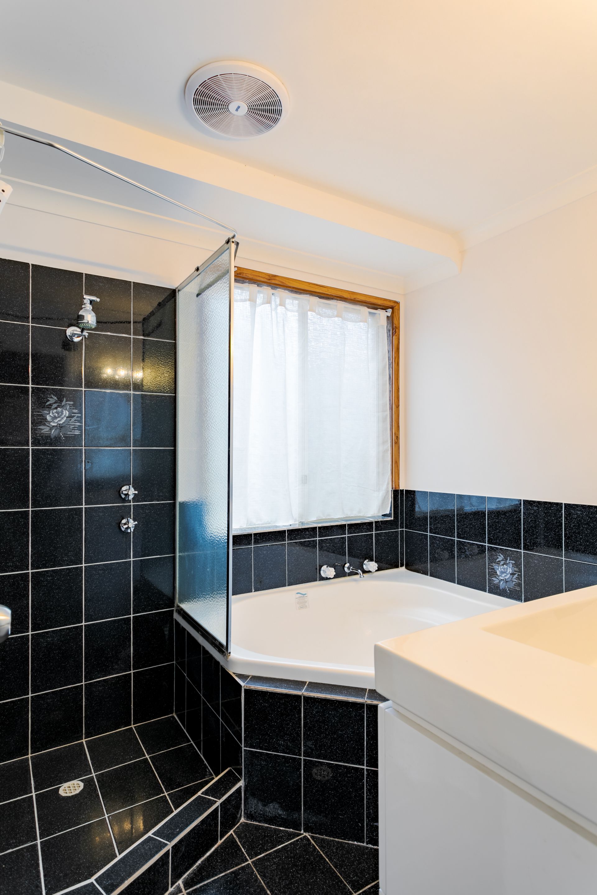 Separate laundry and toilet, electric storage hot water system
