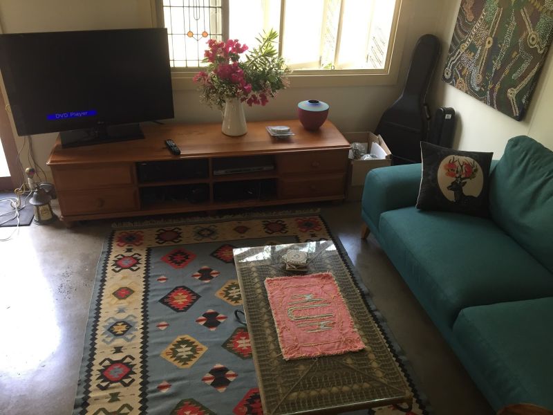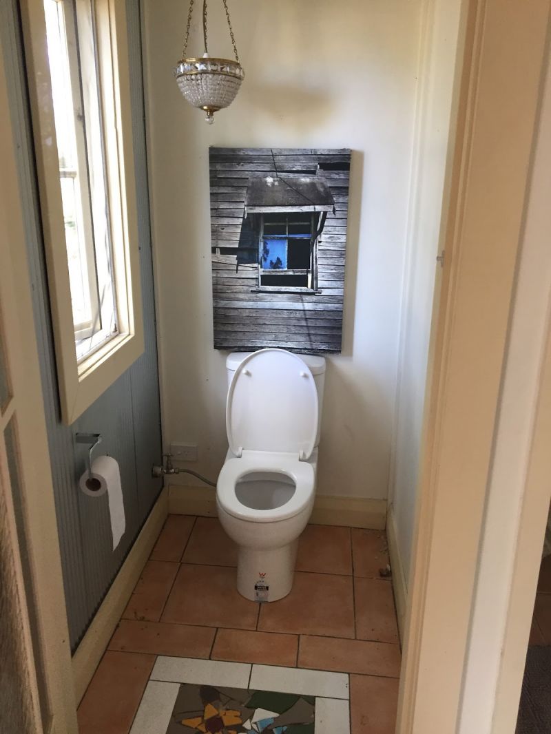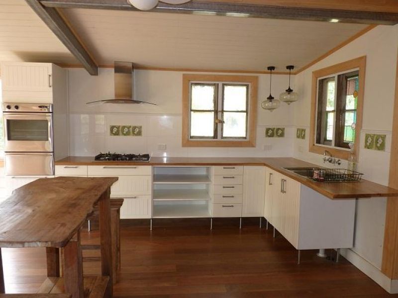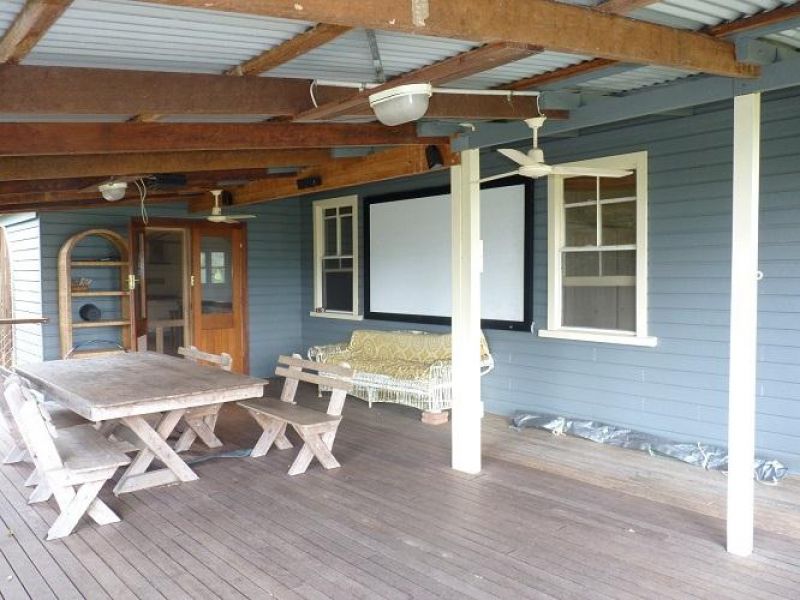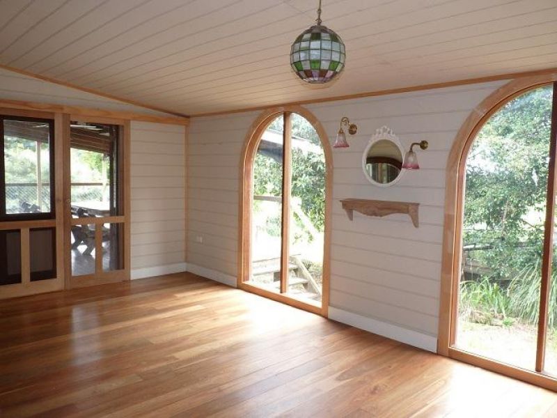 There is a good sized shed on property, which is 3 acres. The dwellings sit at the top of a rise which sweeps down to the Tucki swamp. In heavy rains this becomes a water front! Heavy rain does not create an access problem for the property. A large fig tree is central in the paddock and wide open views in most directions. A lovely breeze comes in from the east, sunsets to the west, morning sun on the verandah and into the kitchen dining room.