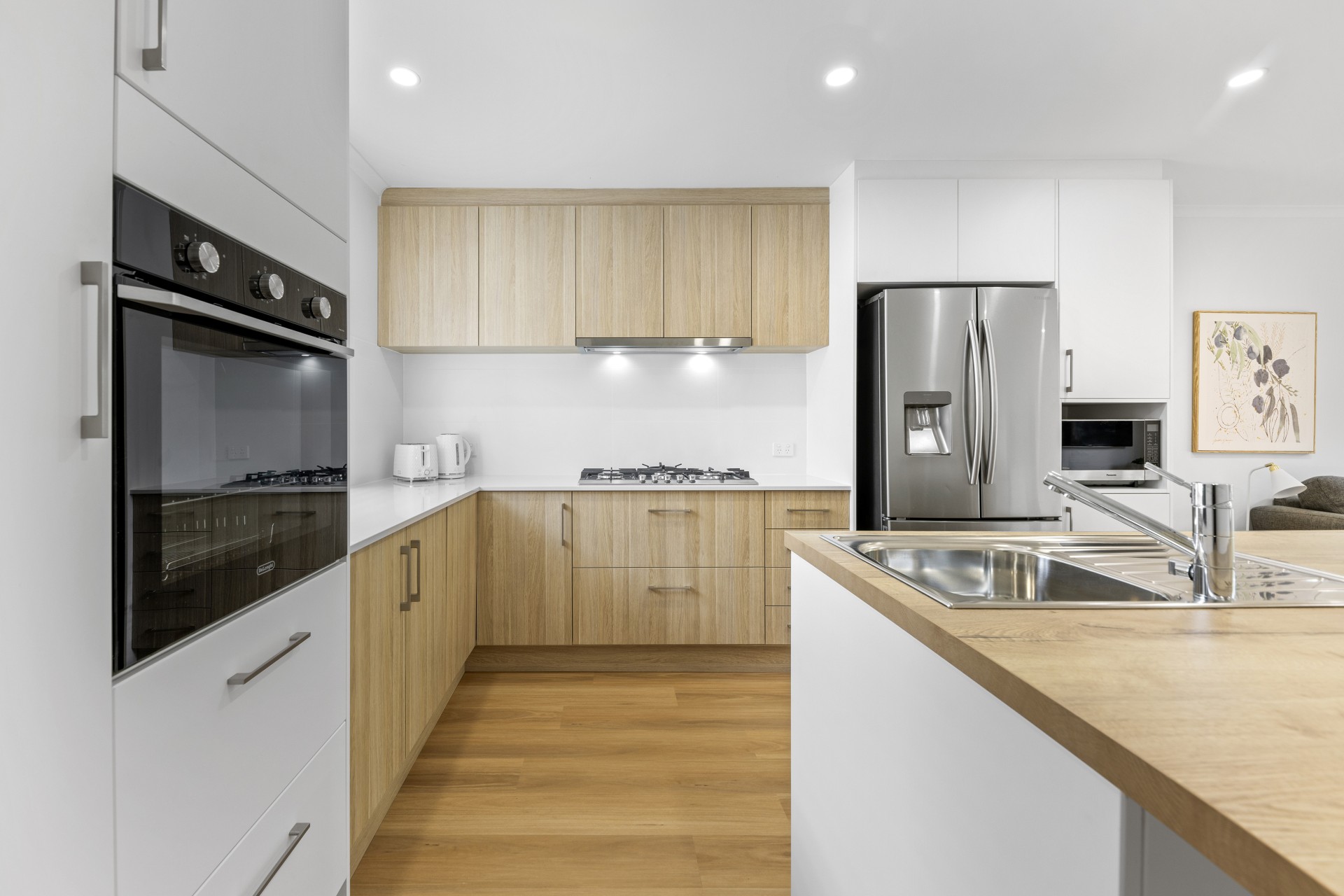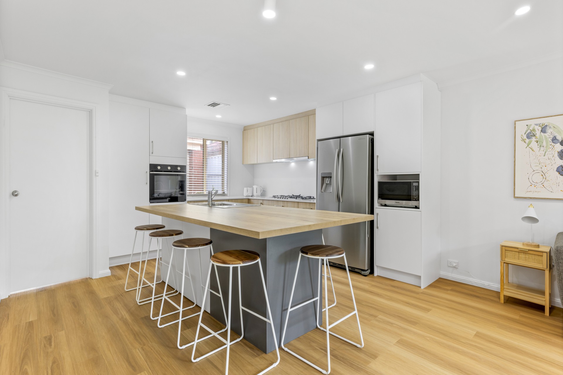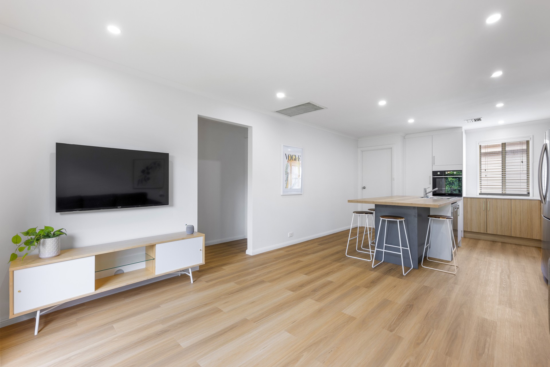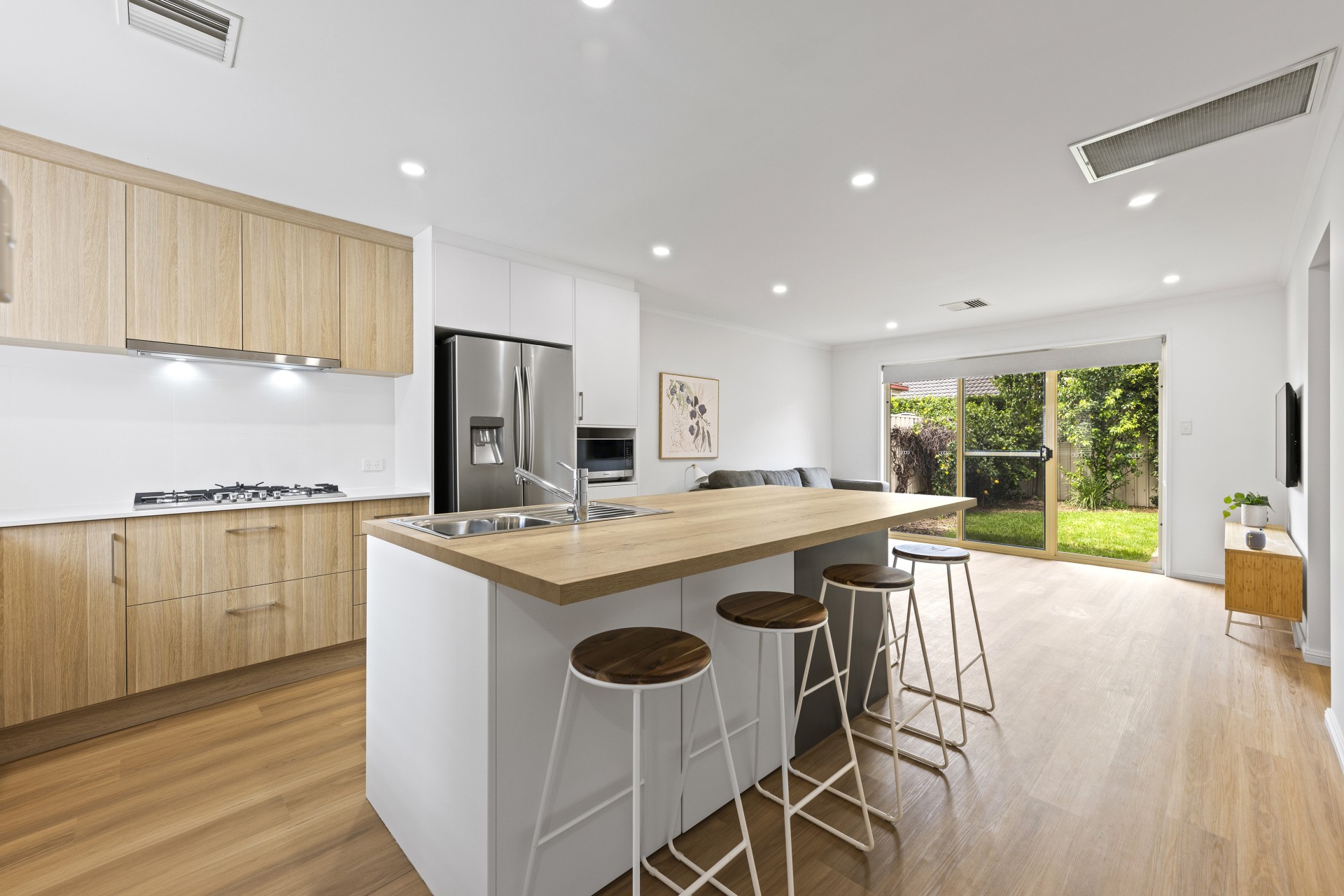 - open plan kitchen/living