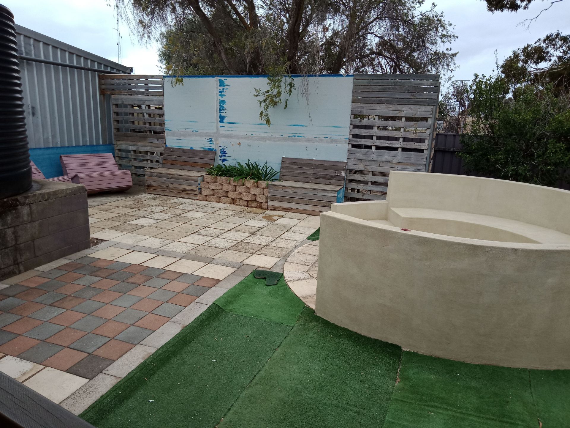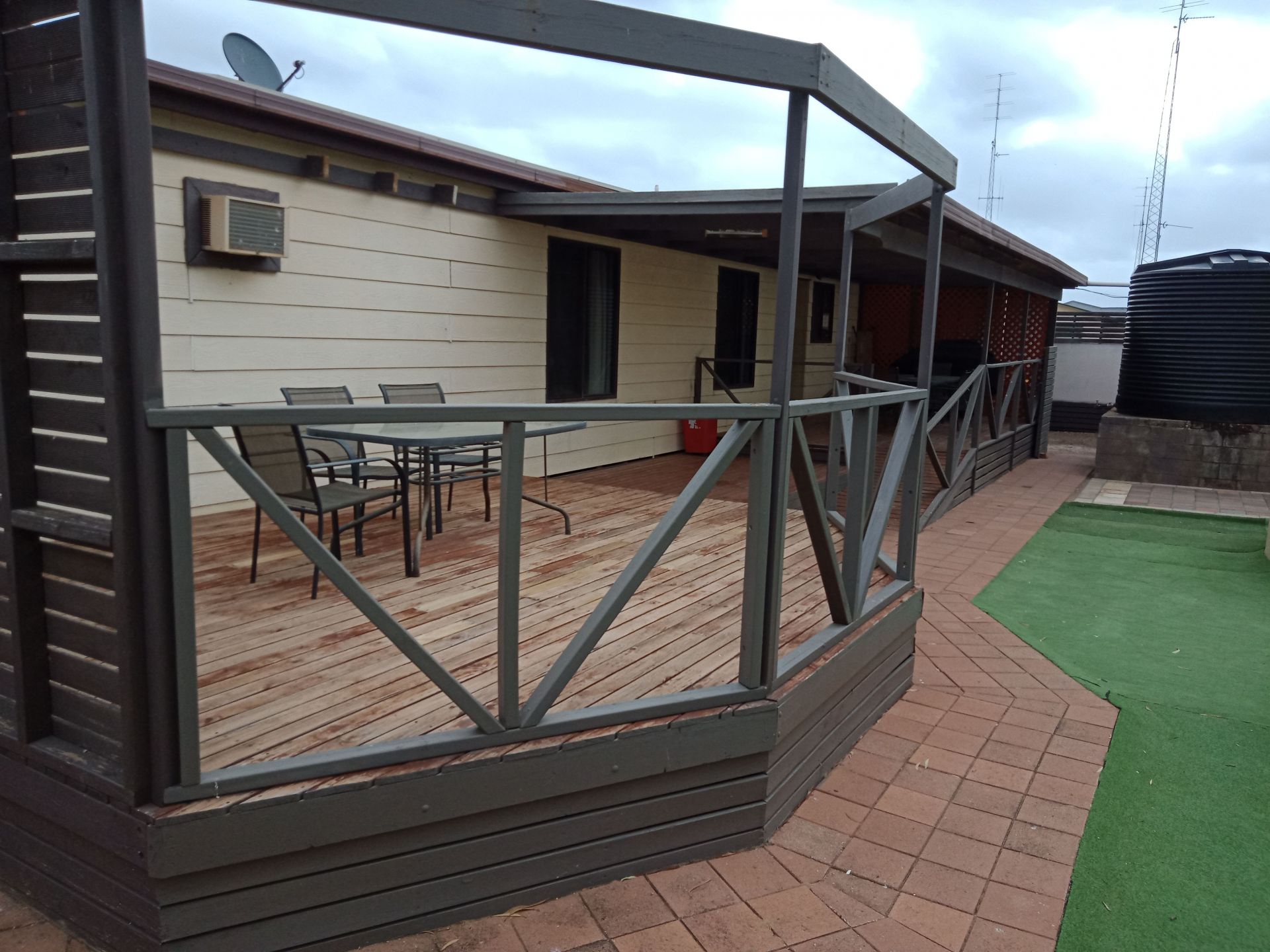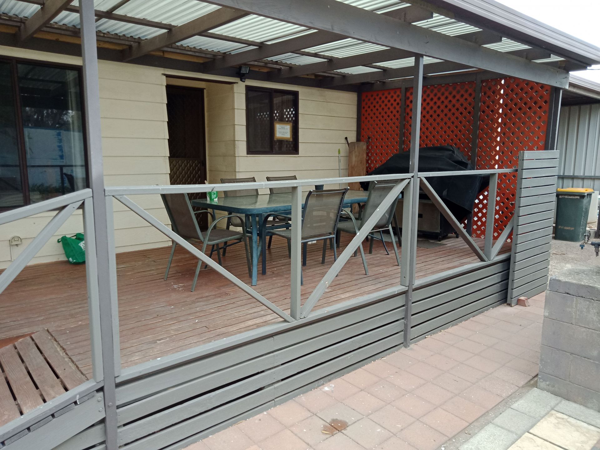 The back area includes a huge covered decking area with BBQ and outdoor setting for 6. The decking area extends further.