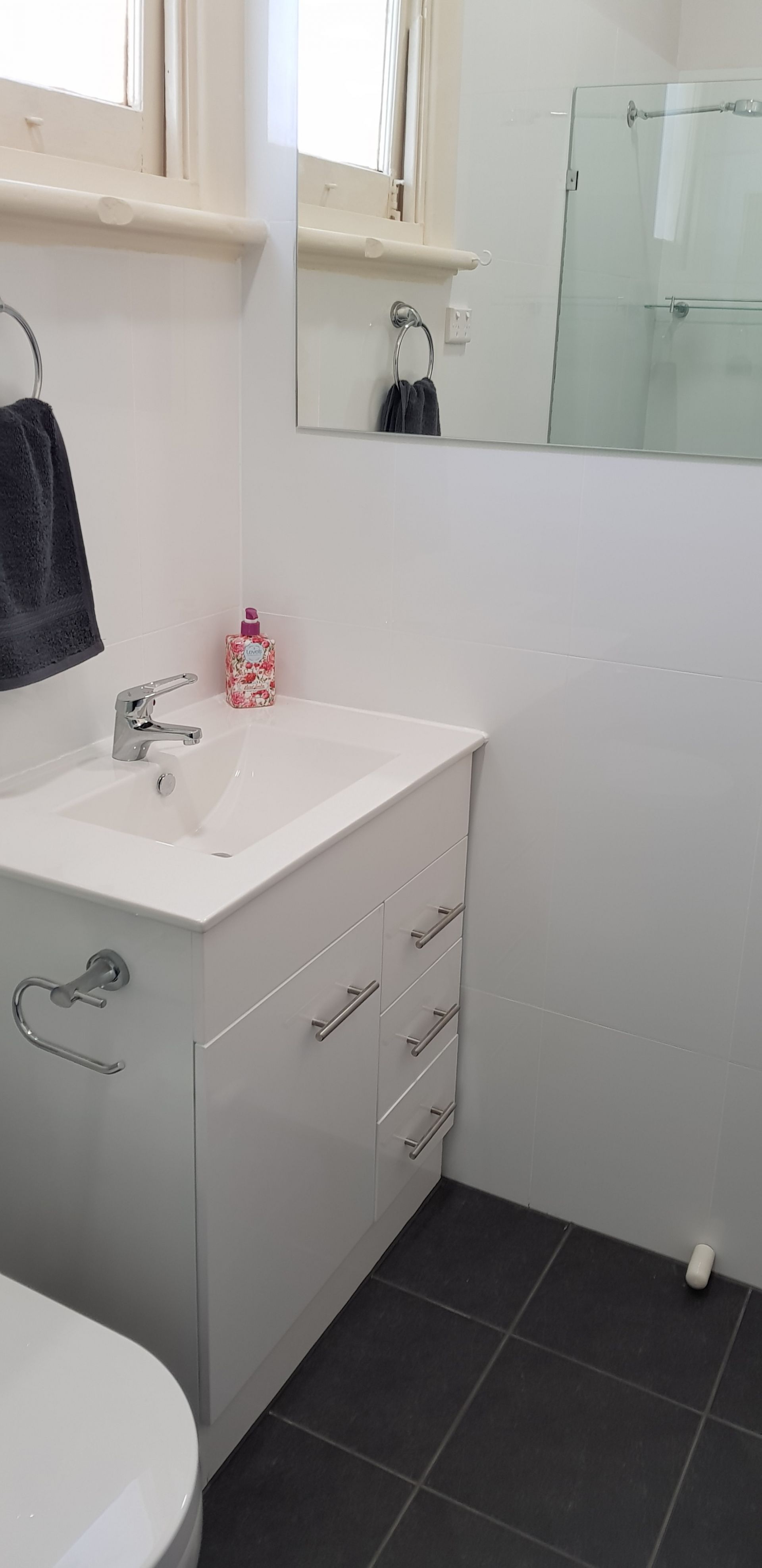 The bathroom has been fully renovated - includes toilet, shower and vanity - all modern.