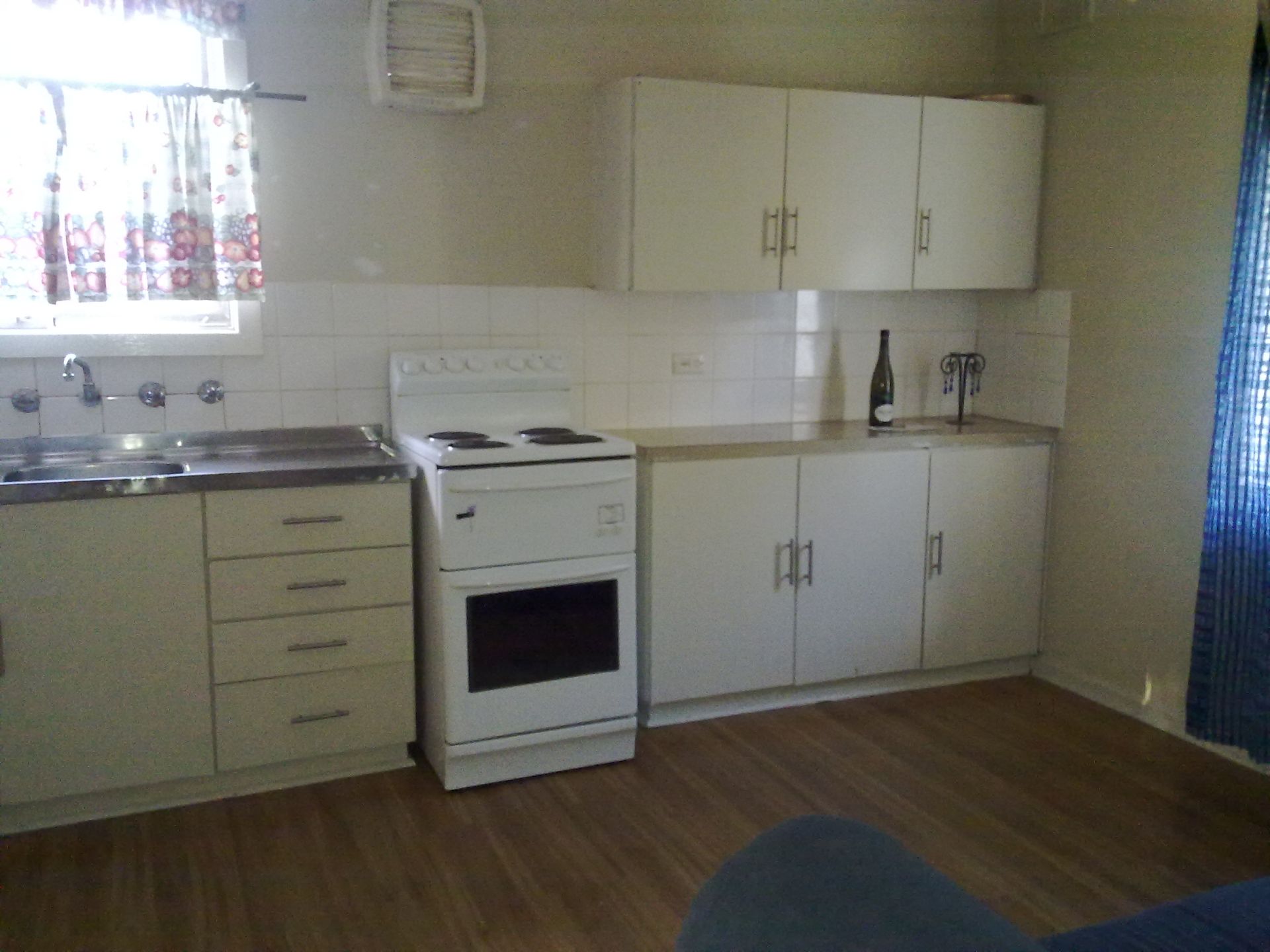 3 comfortable good sized bedrooms, kitchen, living area, walkway with floorboards, separate toilet, bathroom with tiled floor and laundry, kitchen floating boards. Garage for car storage and garden shed at the back, circular clothes lines with paved area. Huge backyard.