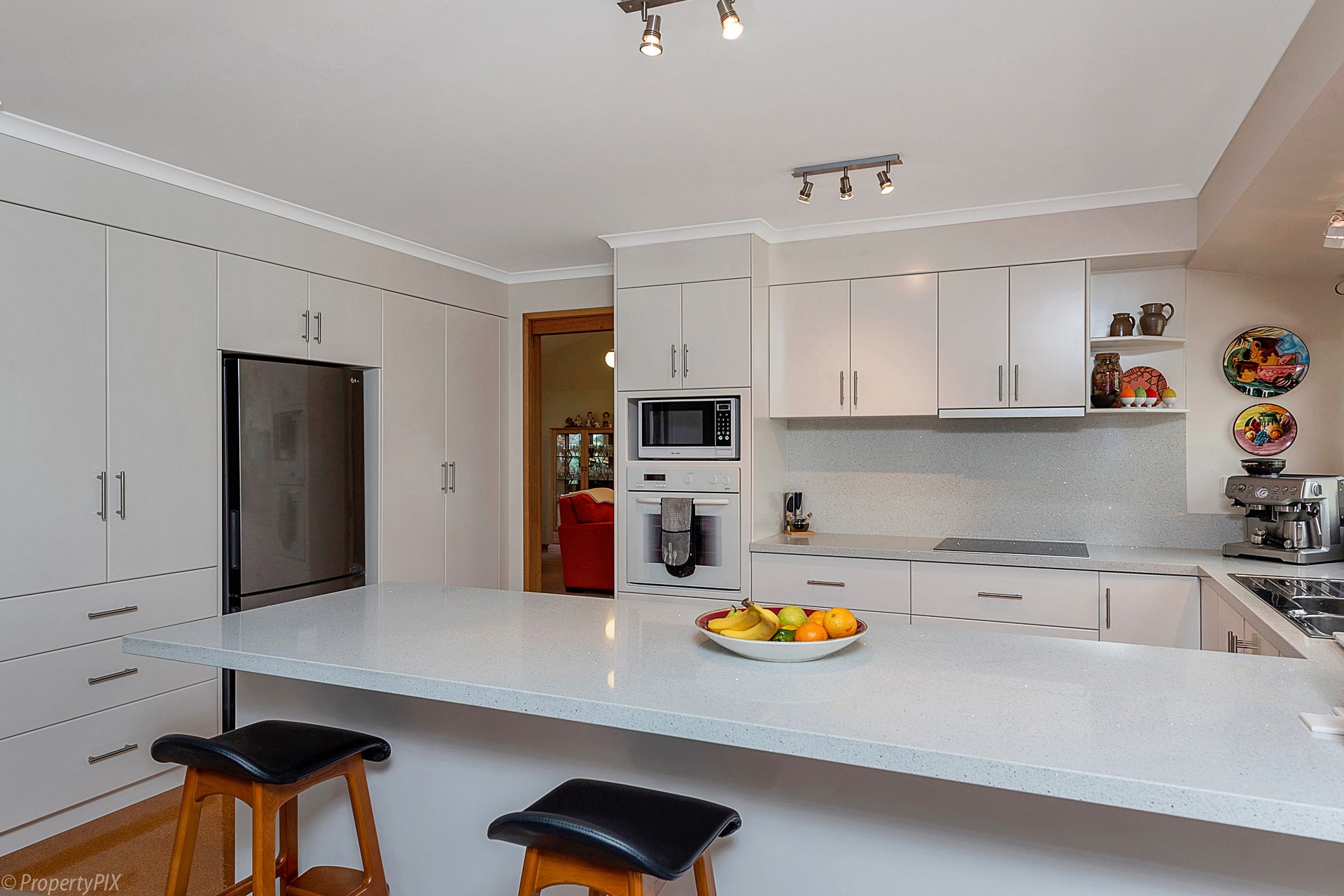 A generous deck provides a sitting and dining area perfect for entertaining. Easy living continues inside the home with two generous living areas both with sliding doors to the deck. The open plan lounge dining room, and modern kitchen with Bosch induction cook top is the hub of the home with a large home office/ possible 5th bedroom leading off from the dining area. The second lounge leeds to the master bedroom which has a walk in wardrobe and modern en-suit and would be a perfect parents retreat if required.