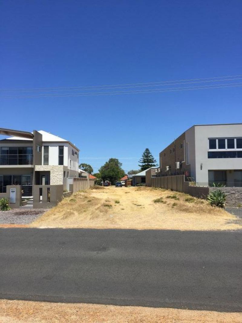 One of a few remaining blocks for sale with 180 degree ocean views is Lot 2 (950B Geographe Bay Road). Walk across the road and on to the beach and slowly stroll 2 klm to the Busselton Jetty and town centre or turn right to go to the marina. Access is from Marine Terrace straight into your future garage. Nestled between two quality built homes to enhance the value of your property once built. A regular flat block with minimum site costs. No strata fees.