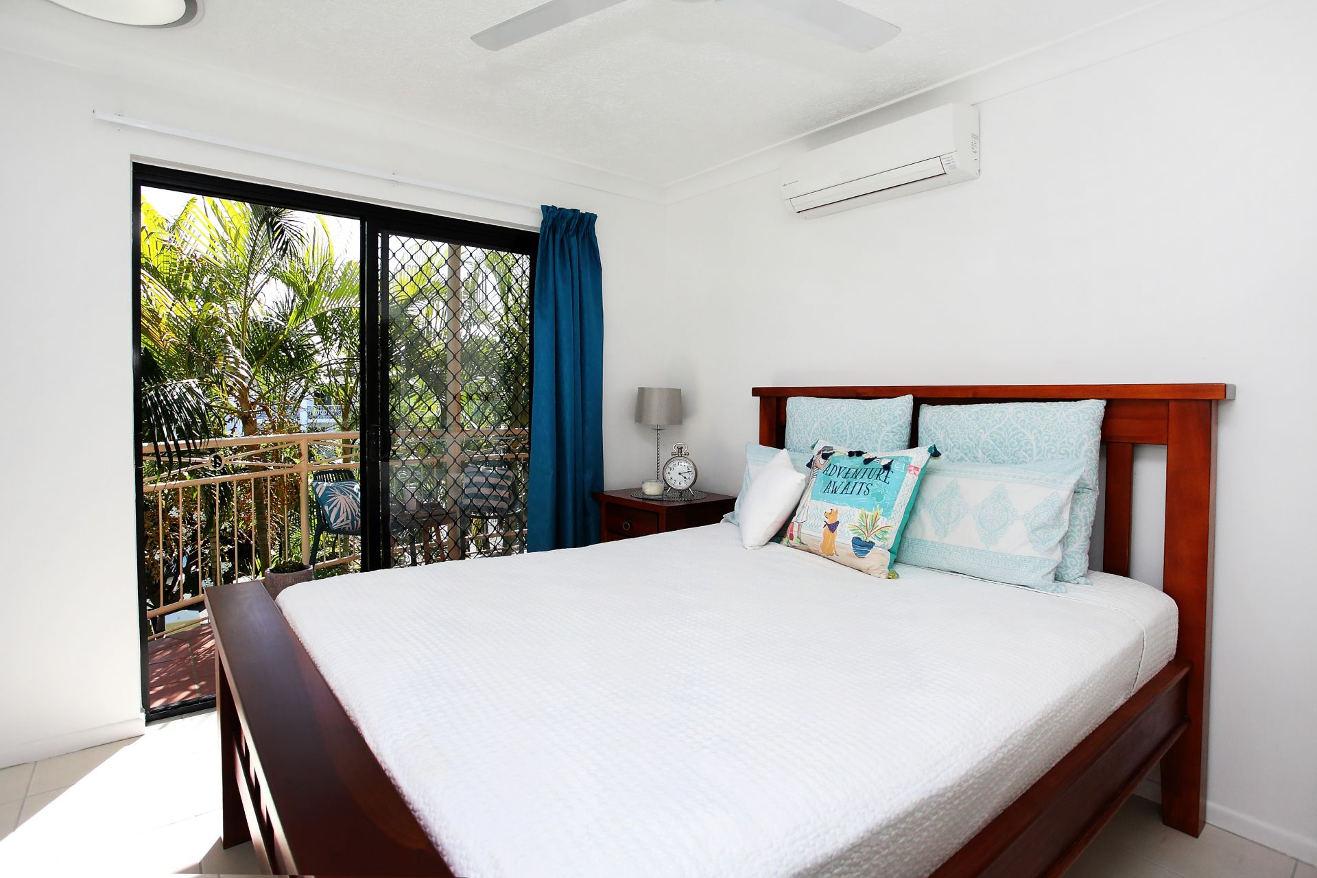 Tiled and air conditioned throughout, with both of the generous bedrooms having their very own bathroom, walk in robe and balcony.