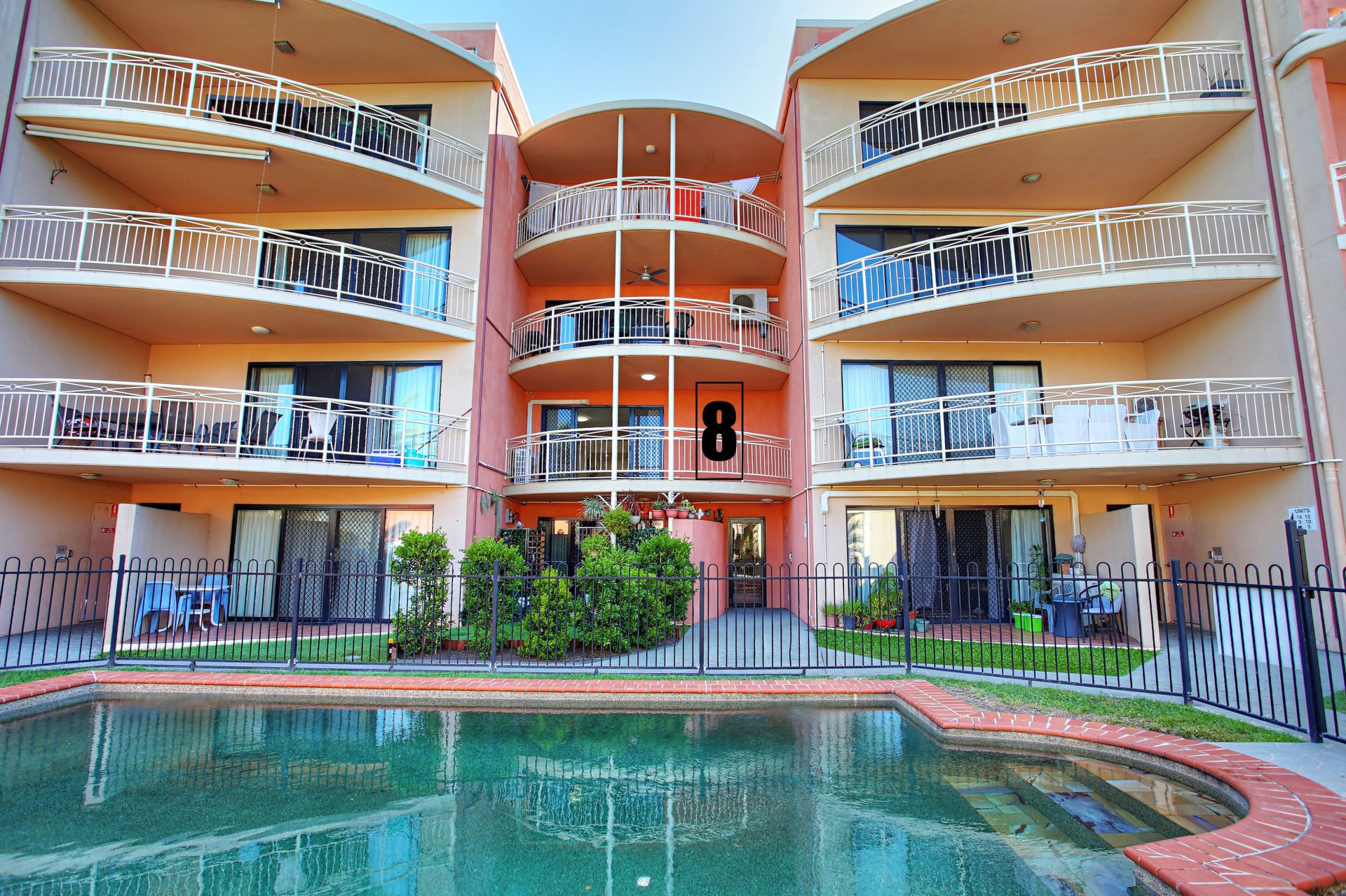 This spacious, stylish unit has an open plan living and kitchen area which overlooks the spacious front balcony and inground swimming pool making entertaining a delight.