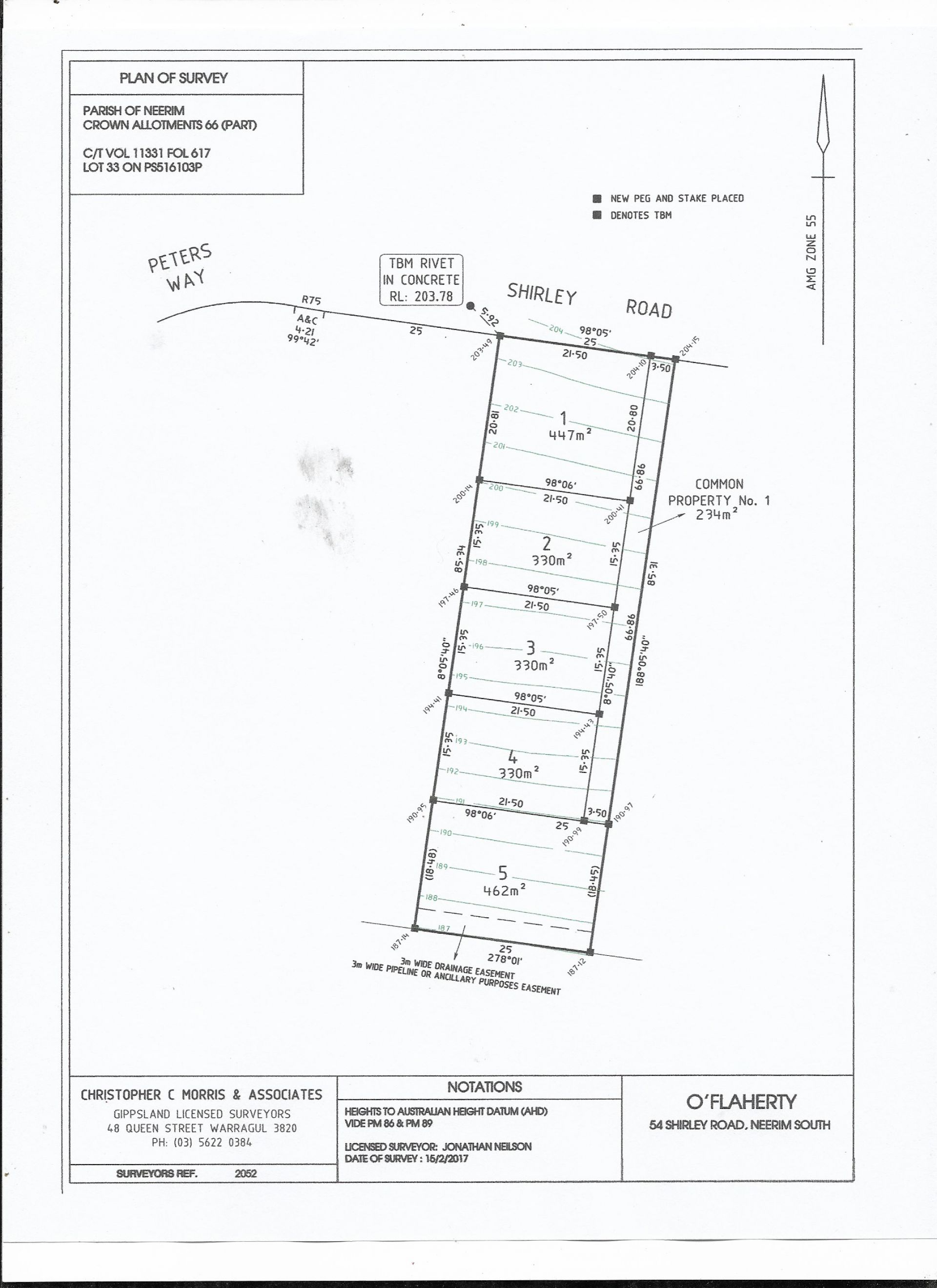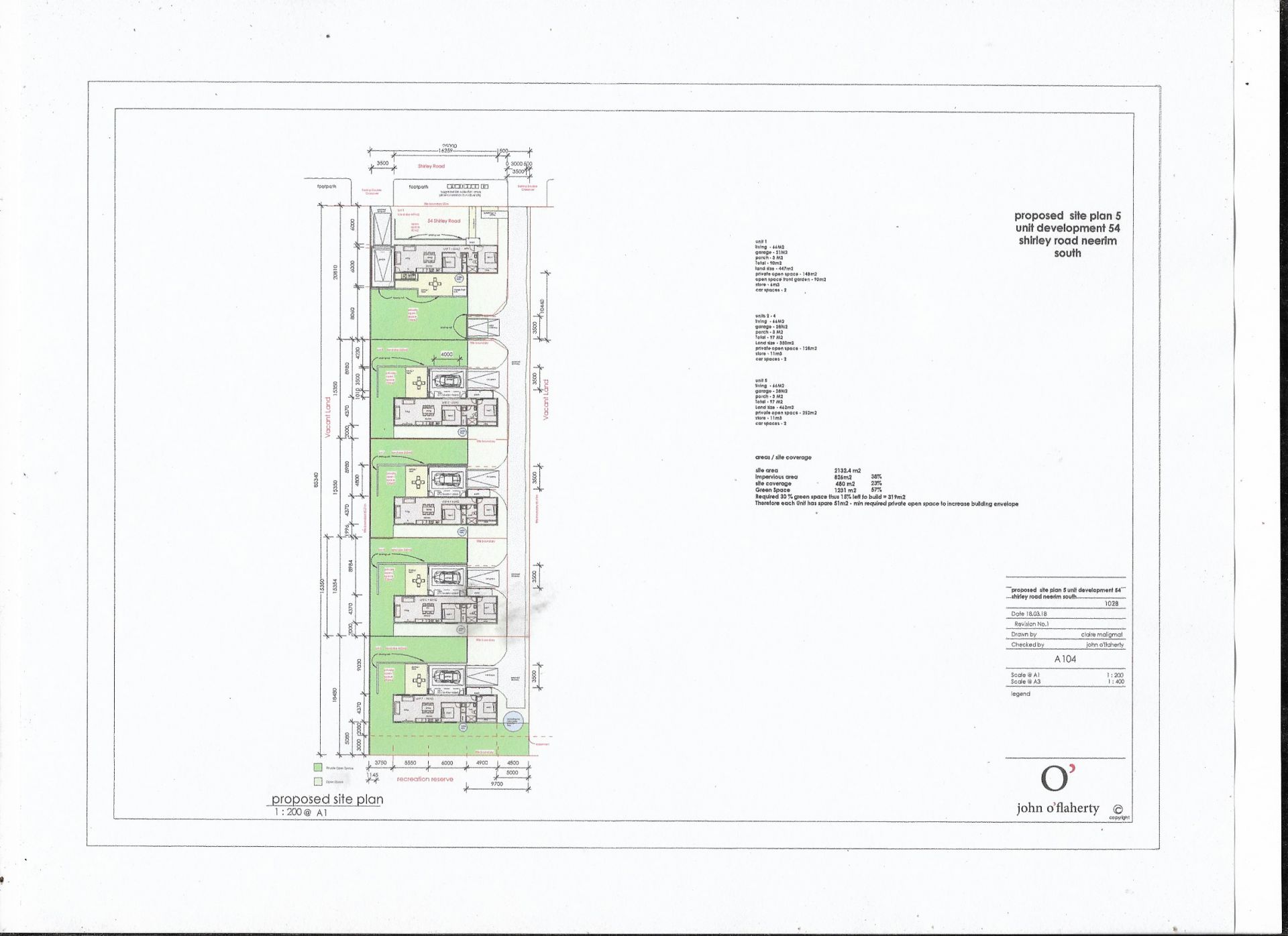 The land is currently vacant with an approved planning permit that allows for the construction of 5 two bedroom units, one bathroom, porch and single attached garage, a total building area of approximately 90m2. Subdivided Lot Land sizes range from 330m2 to 460m2, please see proposed plan of subdivision attached.