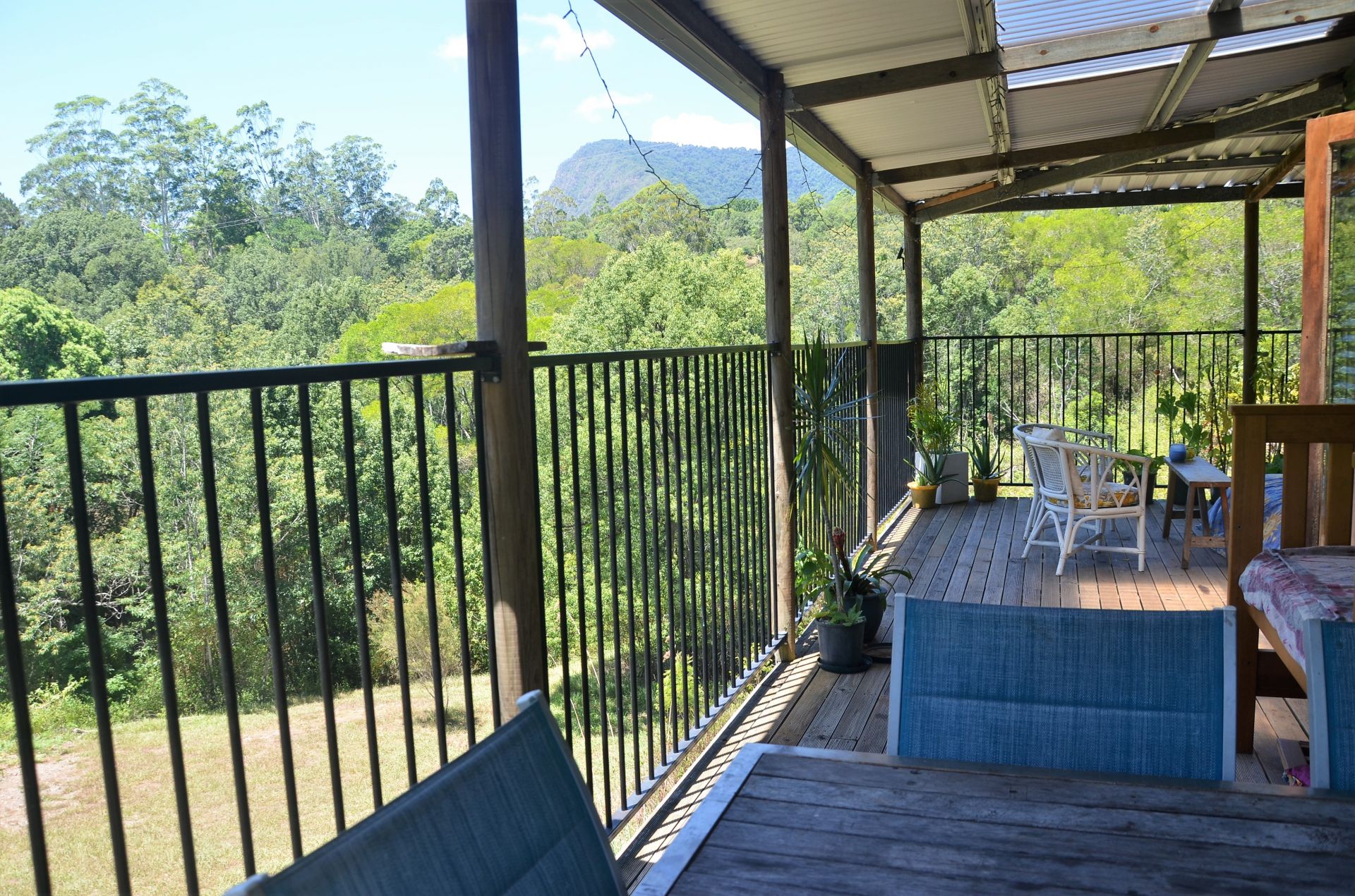Grand Morton Bay Fig, views over trees to Border Ranges and elevated deck offering lovely breezes and views of Blue Knob, frames this very large comfortable, easy to live in home.