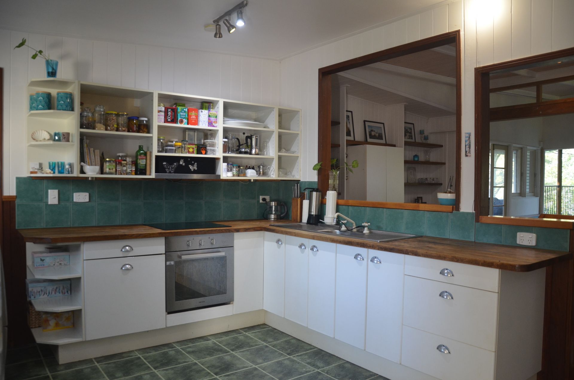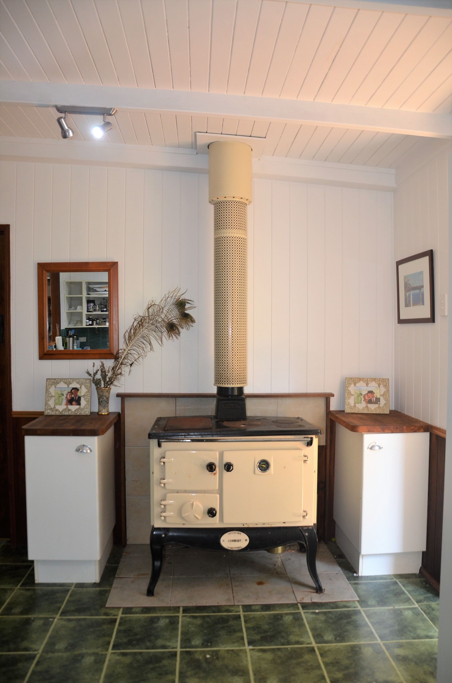 Big open kitchen is the central part of the home and features freestanding Wood Stove in addition to electric oven and new Bosch Induction hot plate.