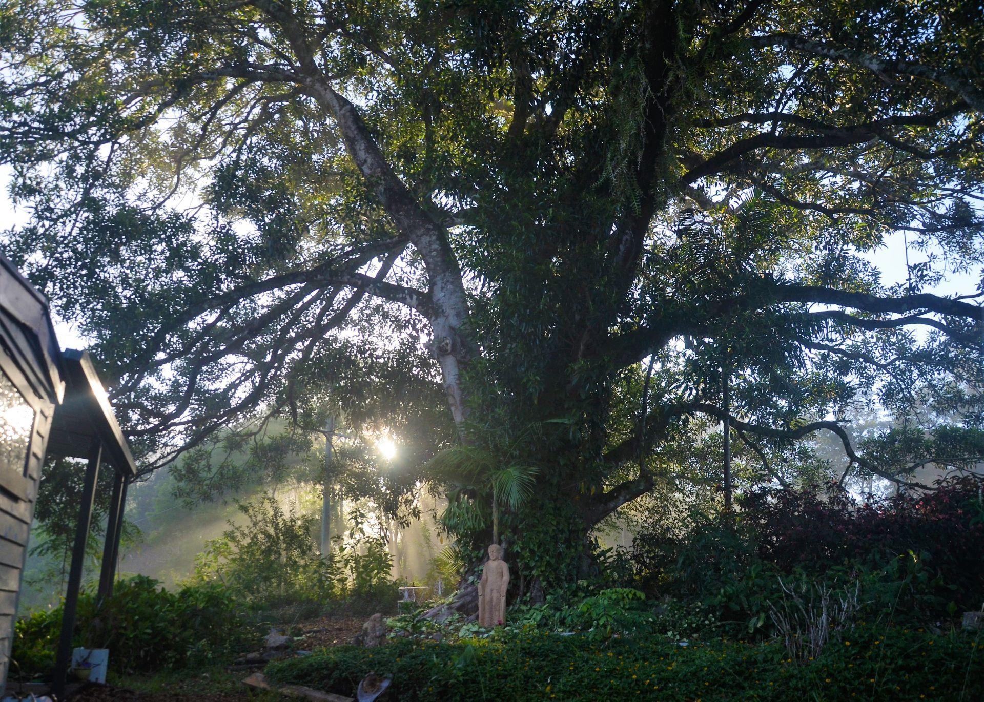 Many native and fruit trees including magnificent fig, Palm trees, Jacaranda, Silky Oaks, flowering gum, Pecan, Mulberry, Lemons, Orange, Lime, Bananas.