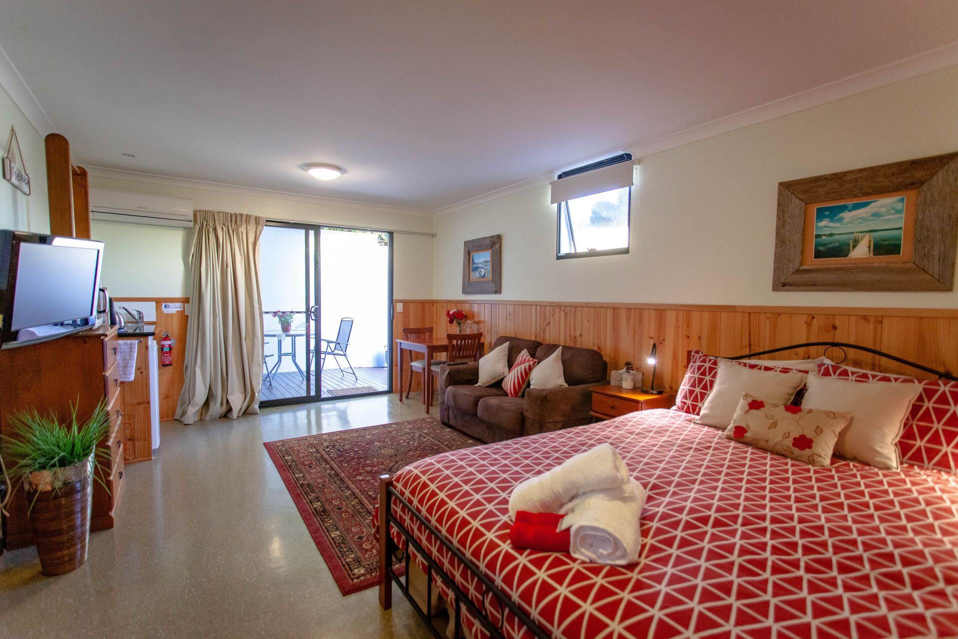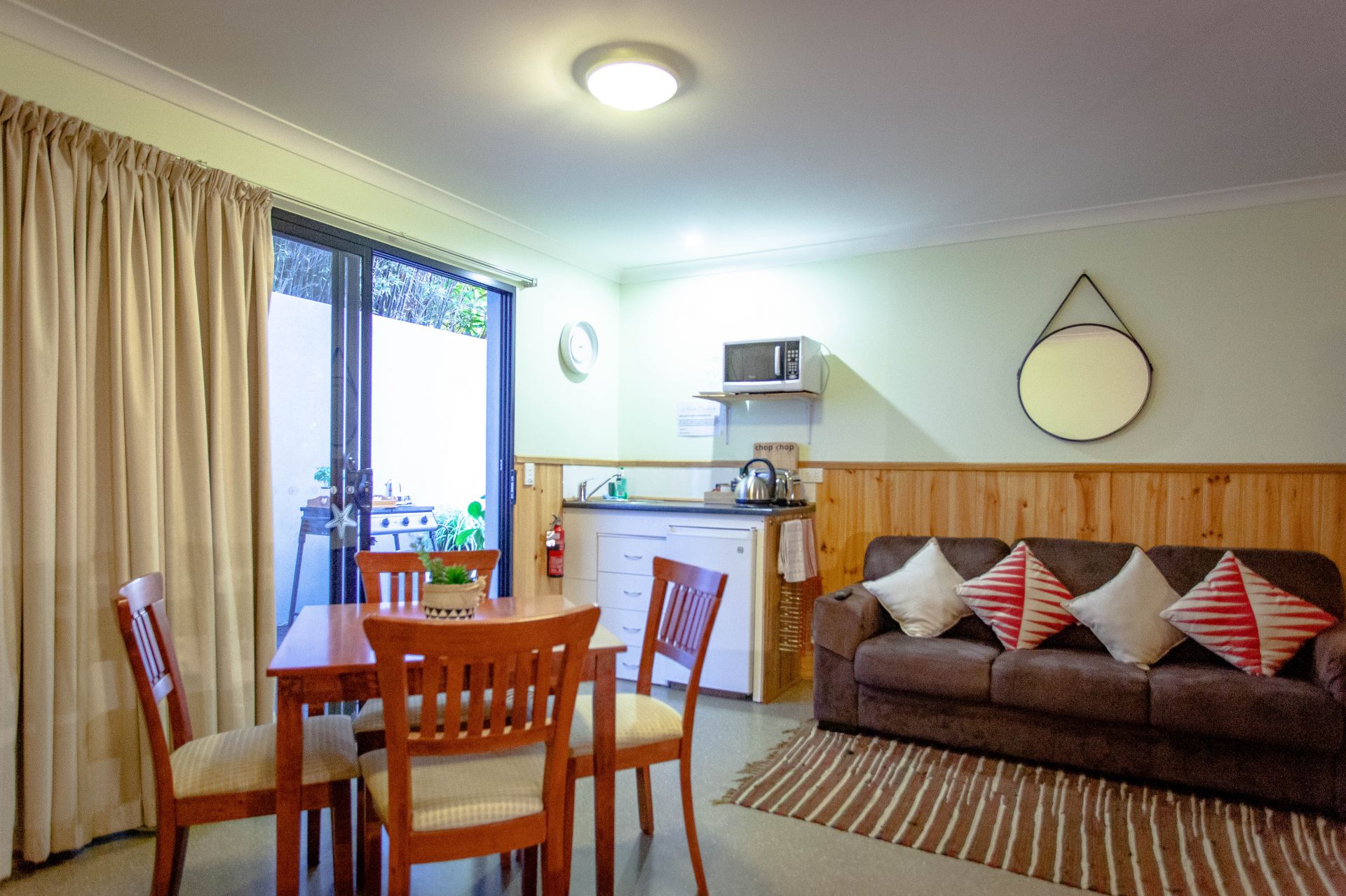 1 x one-bedroom and 1 x two-bedroom, self-contained...each with kitchenette, dining, lounge, queen-size bed, bathroom; and two single bunk beds in the two-bedroom unit. All units are fully furnished, with crockery, cutlery, linen etc., ready to rent via the many online overnight and holiday booking websites.