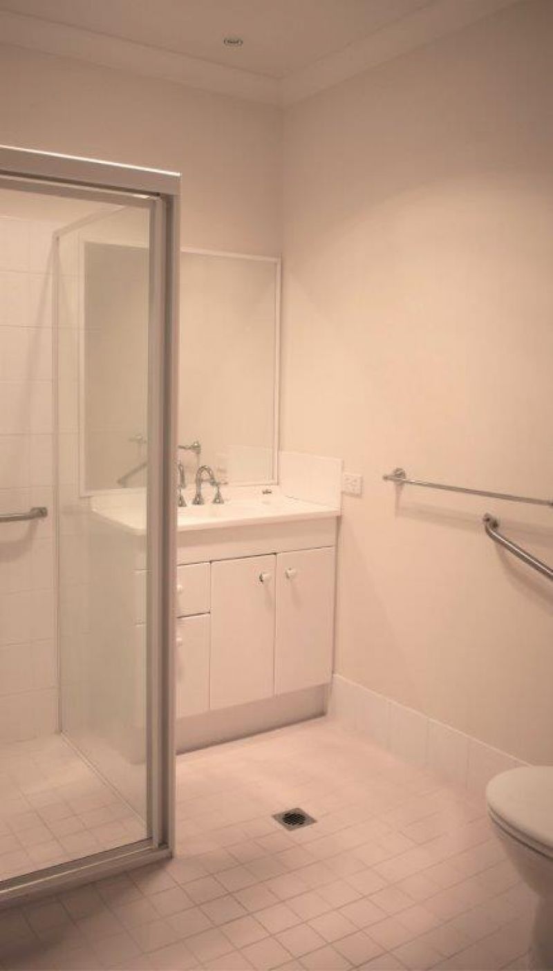 The spacious, light filled, air conditioned lounge room has an outlook to beautiful gardens. Main bathroom features handrails, hand-held shower arm and a toilet. There also a separate second toilet with hand basin.
