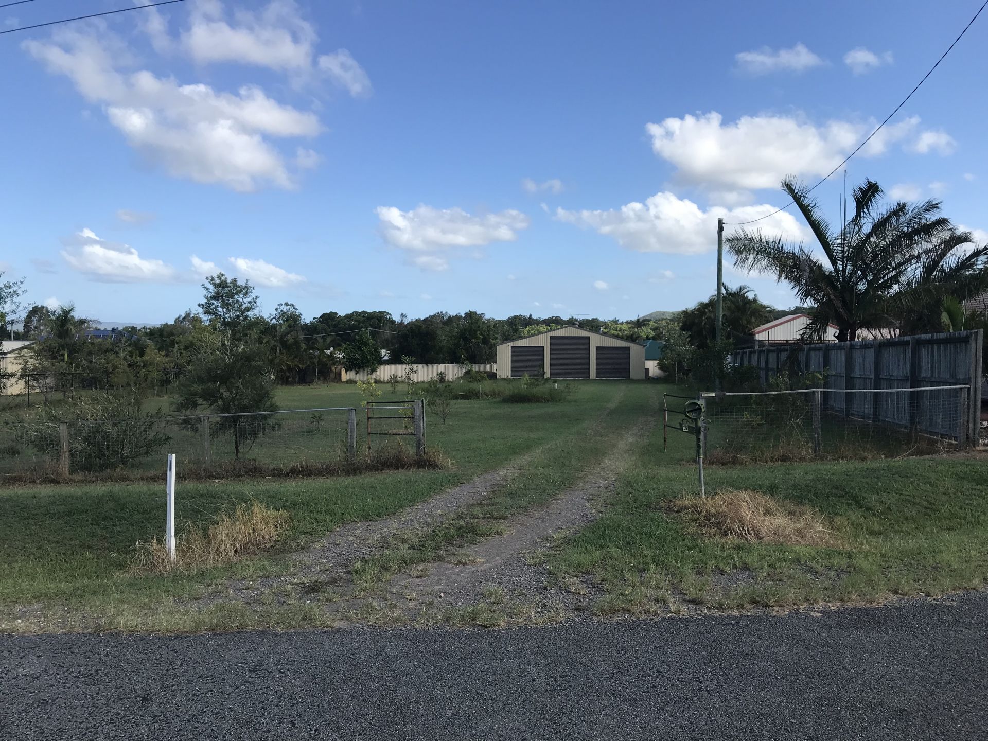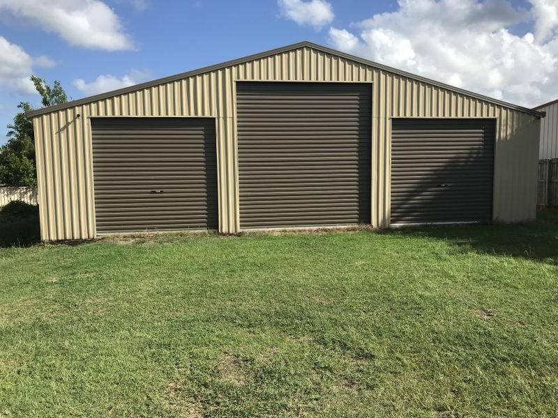 A 10m x 11m Colorbond shed with 4 roller doors is set at the rear of the block. The shed has some amenities for camping including lights, a HWS and a kitchen.