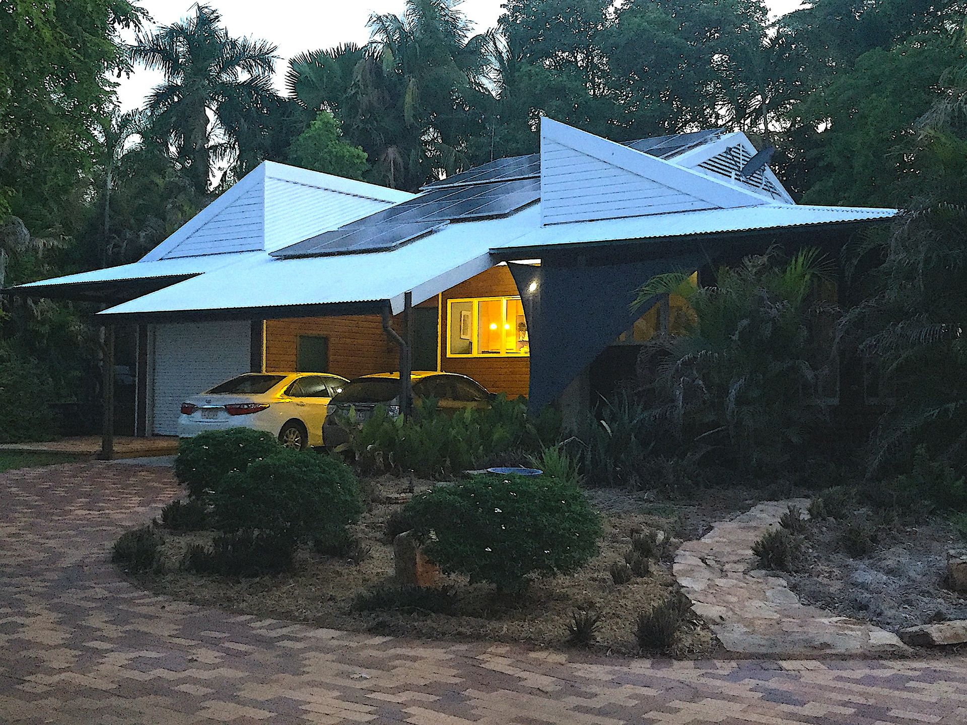 - House designed for cross-ventilation, high ceilings and roofline aid cooling