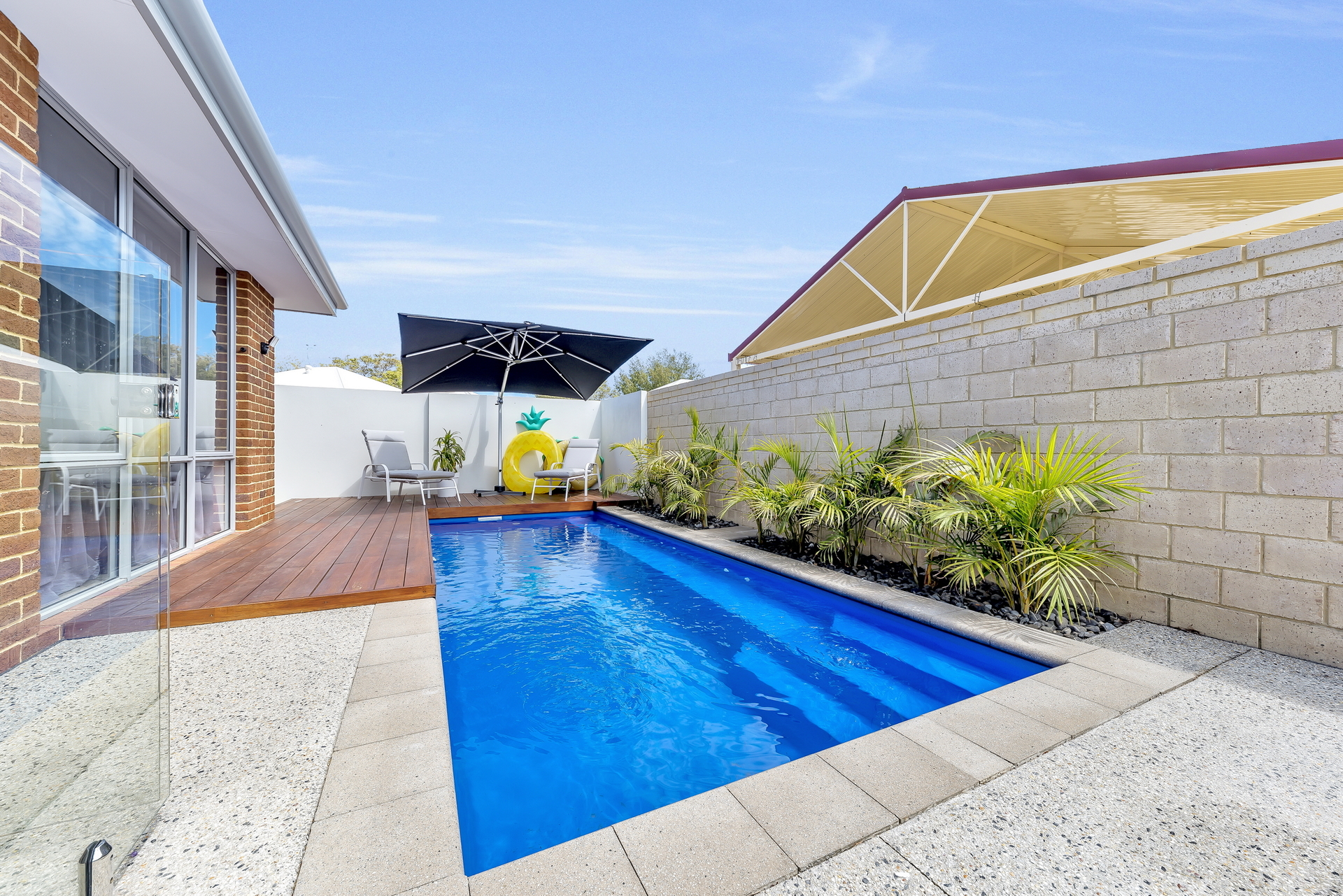 Inside you will find a seperate lounge room with sliding glass doors opening up to the alfresco area and views of the pool on the other side.