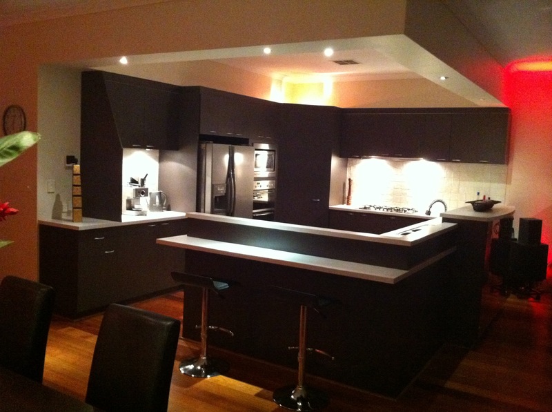 * Stainless steel double electric oven, dishwasher, double-bowl sink, 900mm 5-burner gas cooktop and slide-out rangehood.