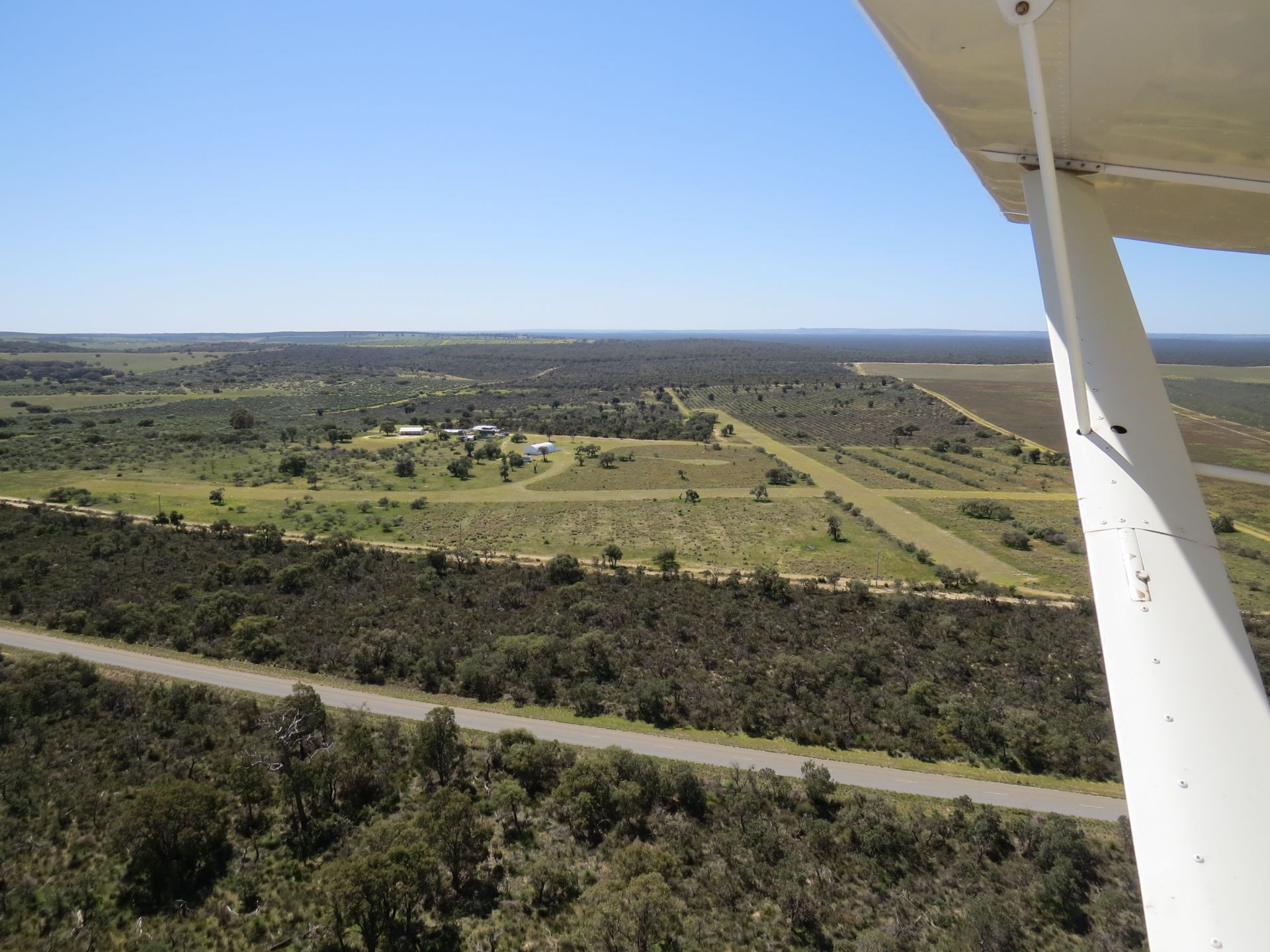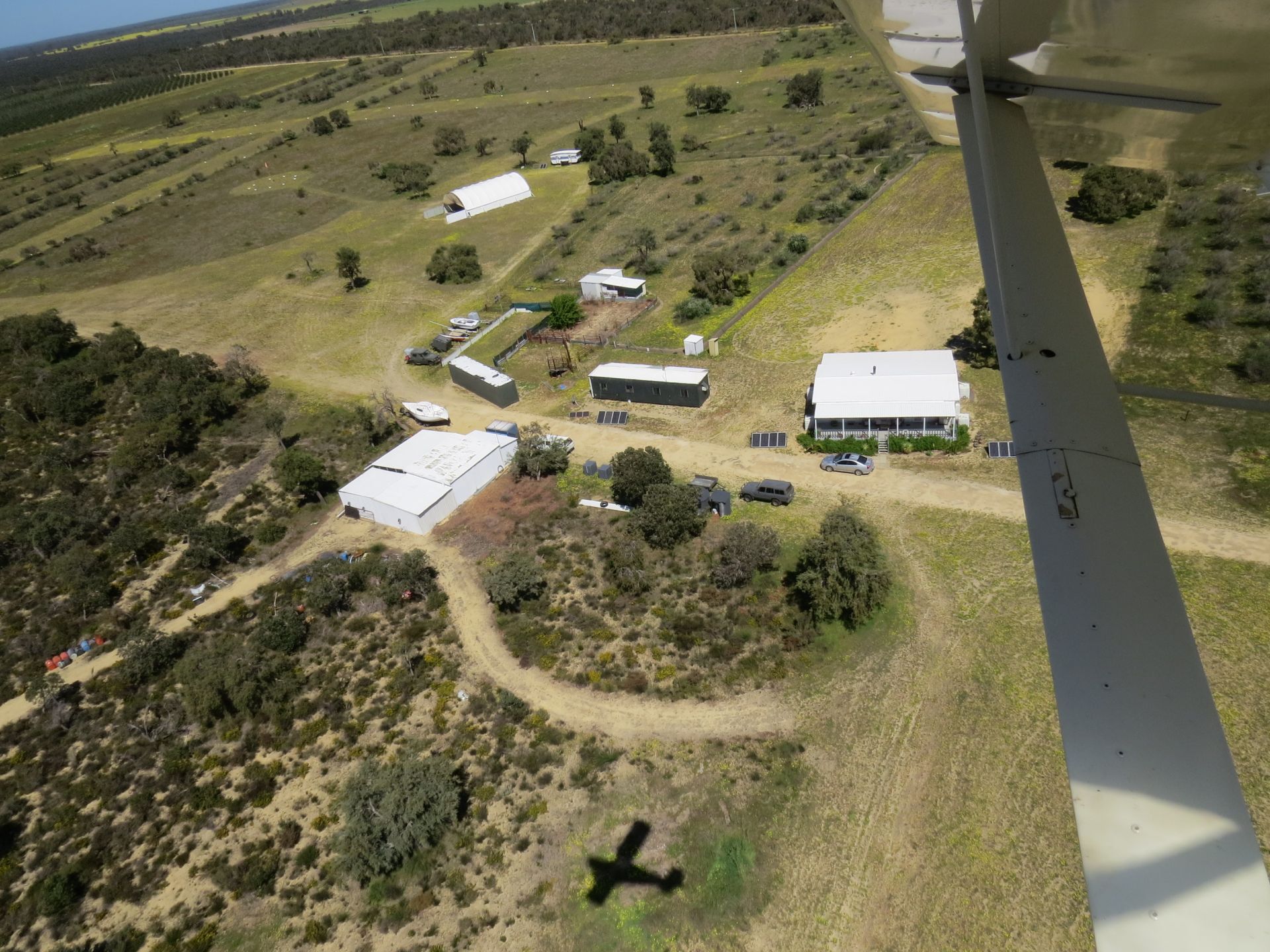 The property is 20 mins East of Lancelin outside controlled airspace. N/South runway = 645 m can be extended to 910m.....E/West 430m. In addition, there's a silo tunnel for your aircraft or whatever you chose to use it for, a very large workshop, a veggie fruit garden, chicken hut, and lots of Tagasaste for cattle & sheep feed.