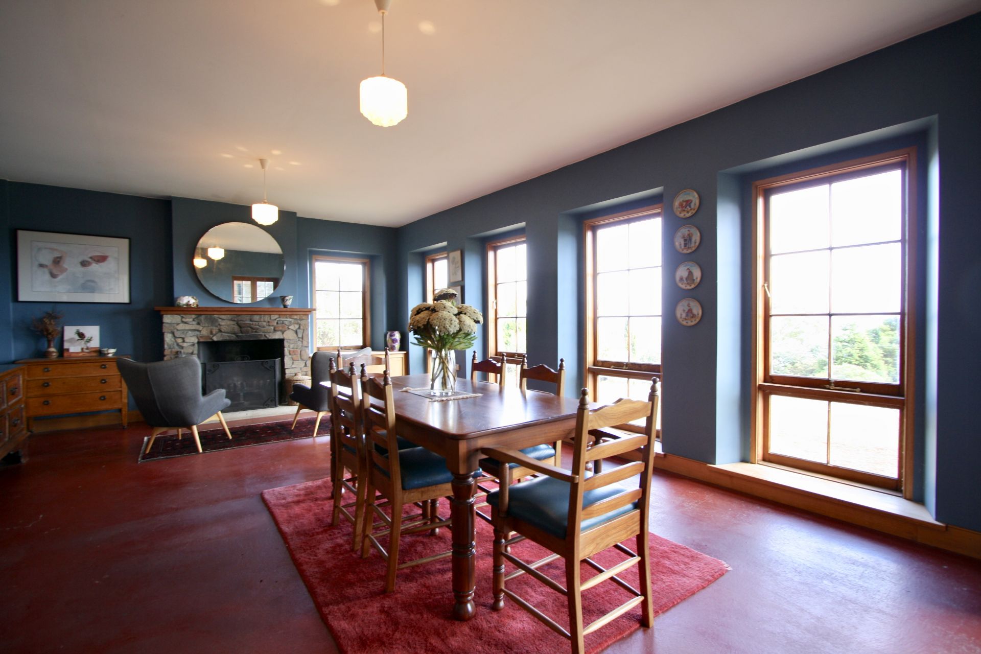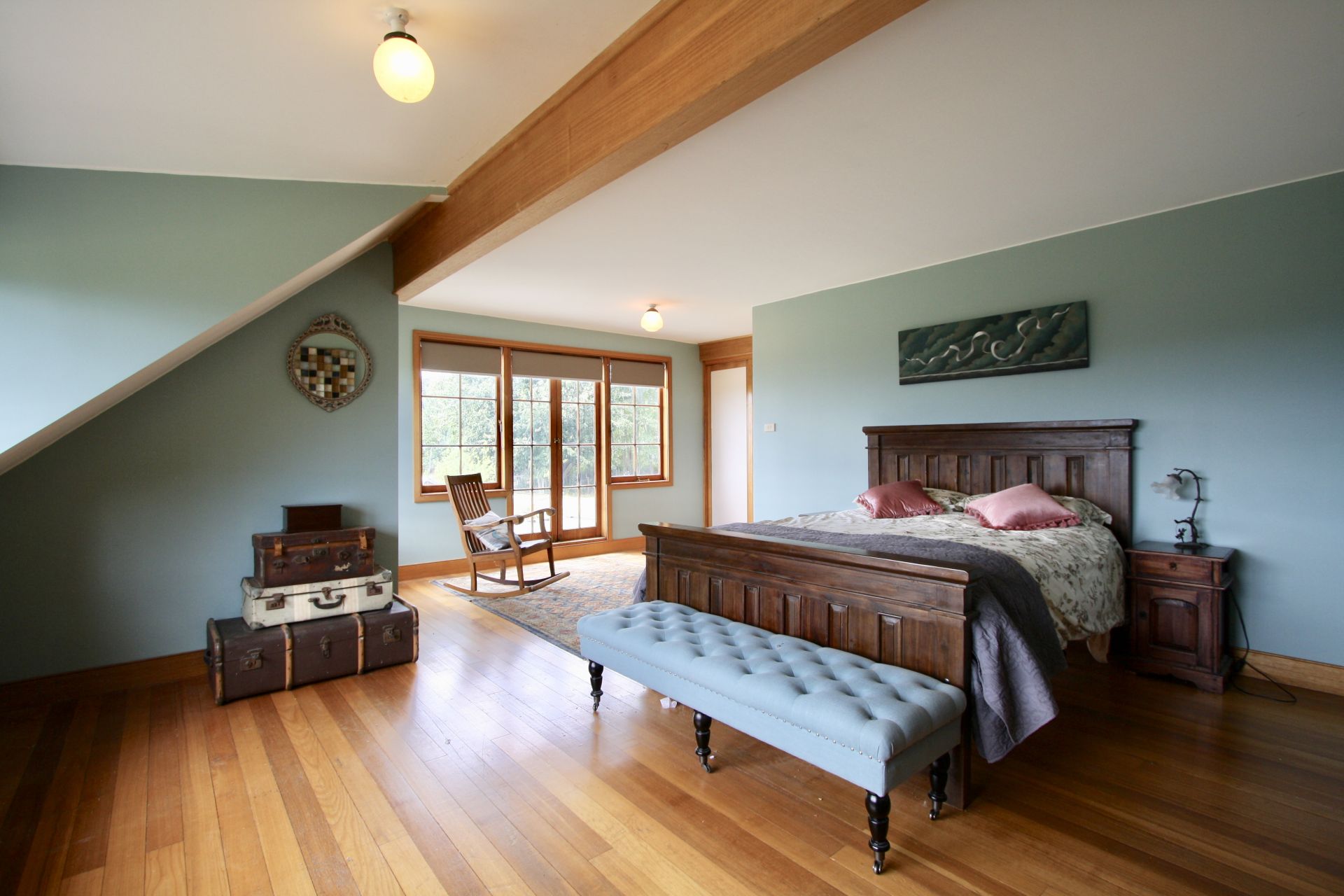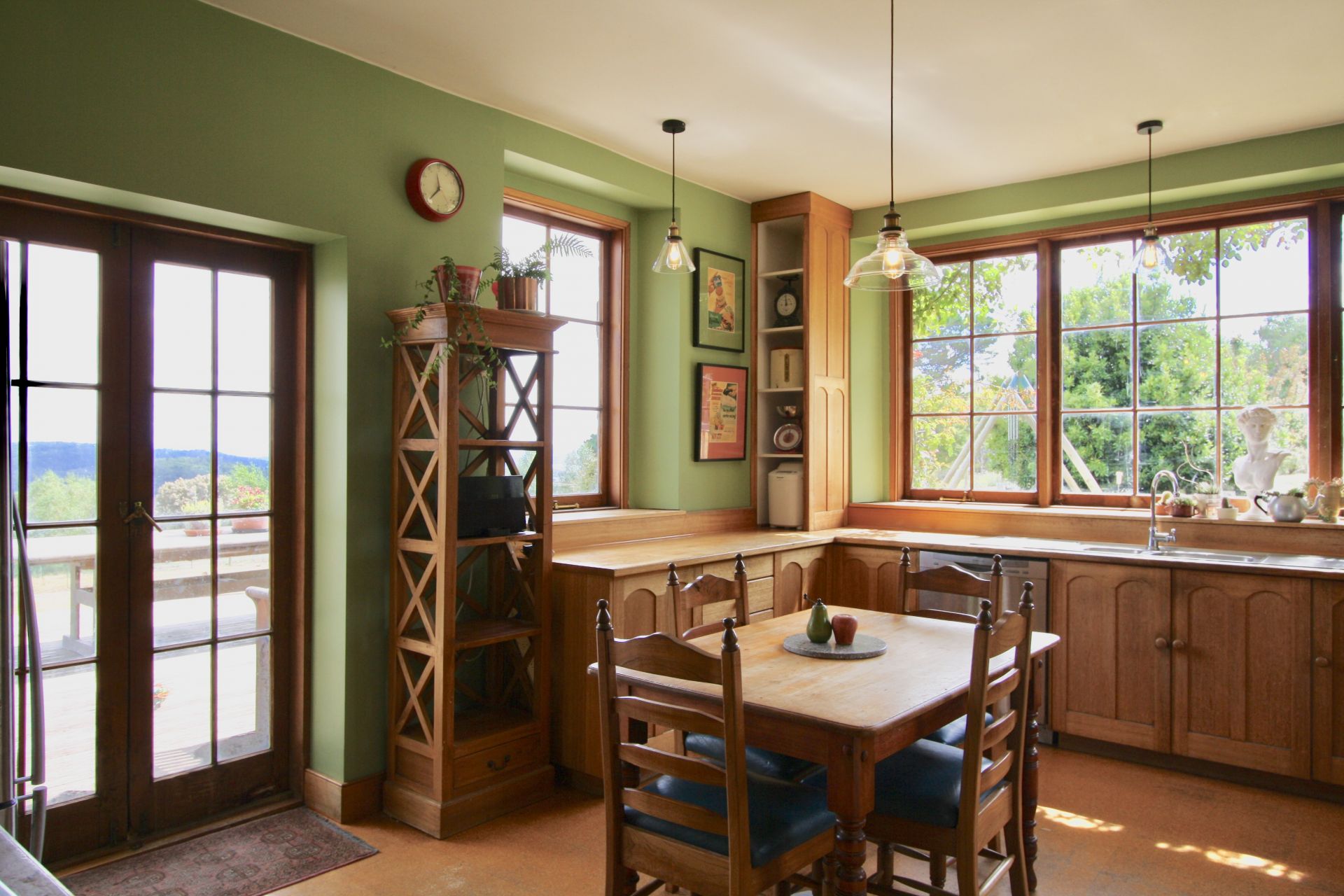 The unique home is built of local stone and is situated to ensure views from every window. There are 5 bedrooms, some very generously proportioned. The eat-in country style kitchen boasts a Rayburn wood fired stove with a "wet-back" that provides the house with hot water, keeping power bills to a minimum. There is also a slow combustion heater which heats the whole home, with the stone walls providing excellent thermal properties. Living areas consist of a large Living/Dining room with an open fireplace, a Lounge Room that opens onto the deck (and those views), and an extra informal living area upstairs. There are two bathrooms, one with a claw-foot bath. The northerly aspect means the home is full of natural light.